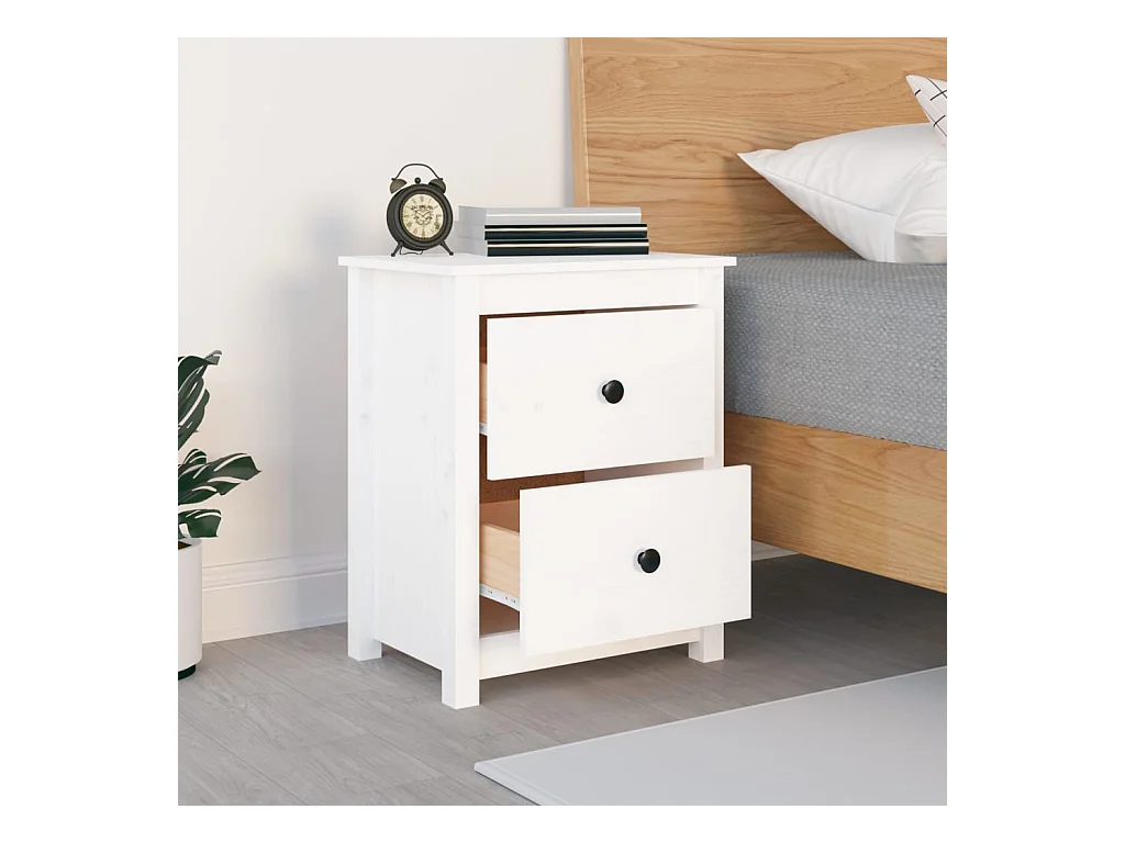 Table de chevet Blanc 50x35x61,5 Bois de pin massif