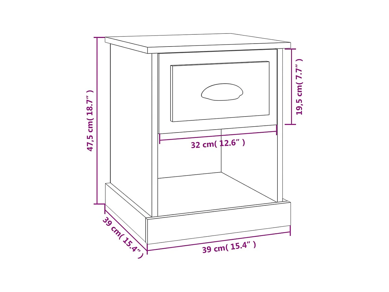 Table de chevet blanc 39x39x47,5 bois d’ingénierie