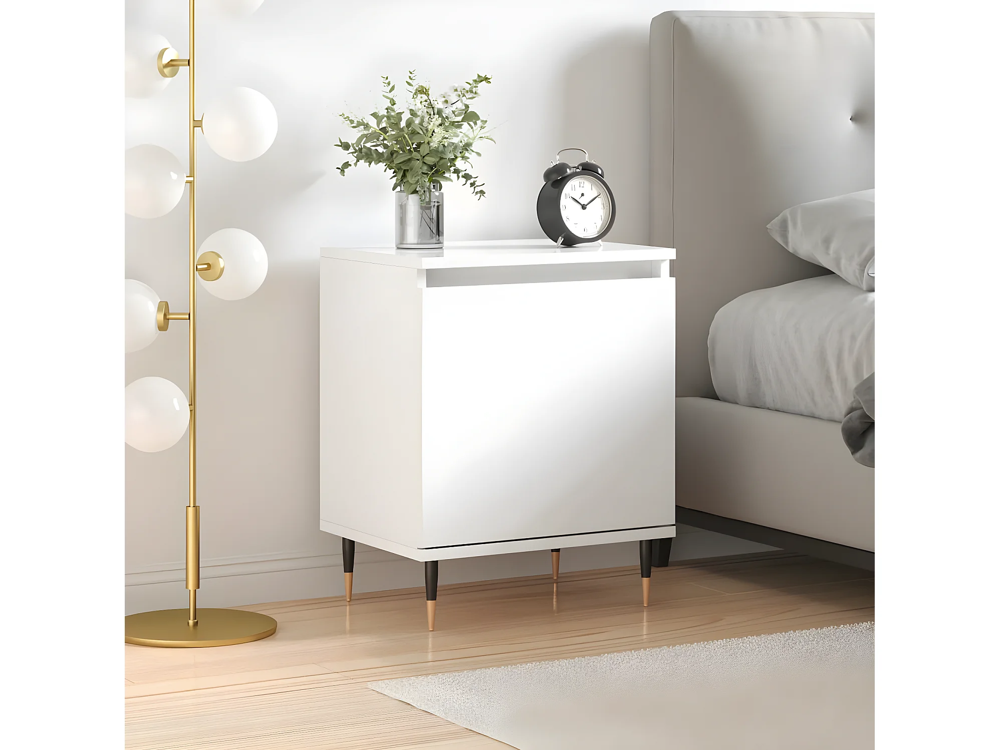 Table de chevet avec pieds en métal Blanc brillant 40x30x50 cm