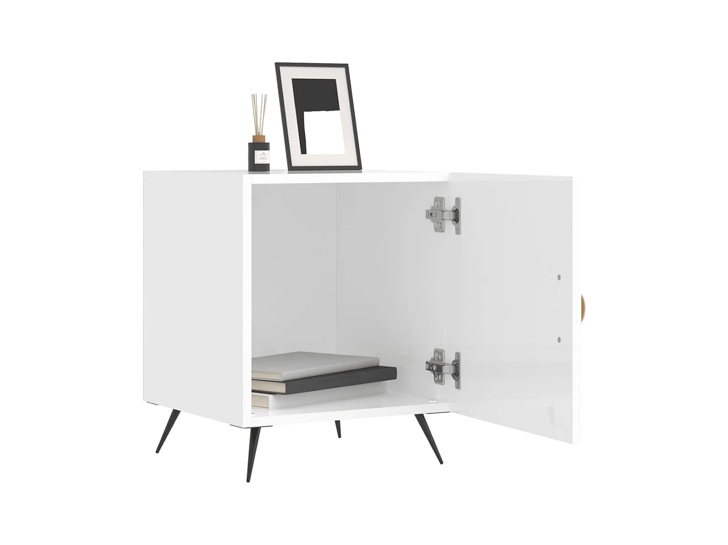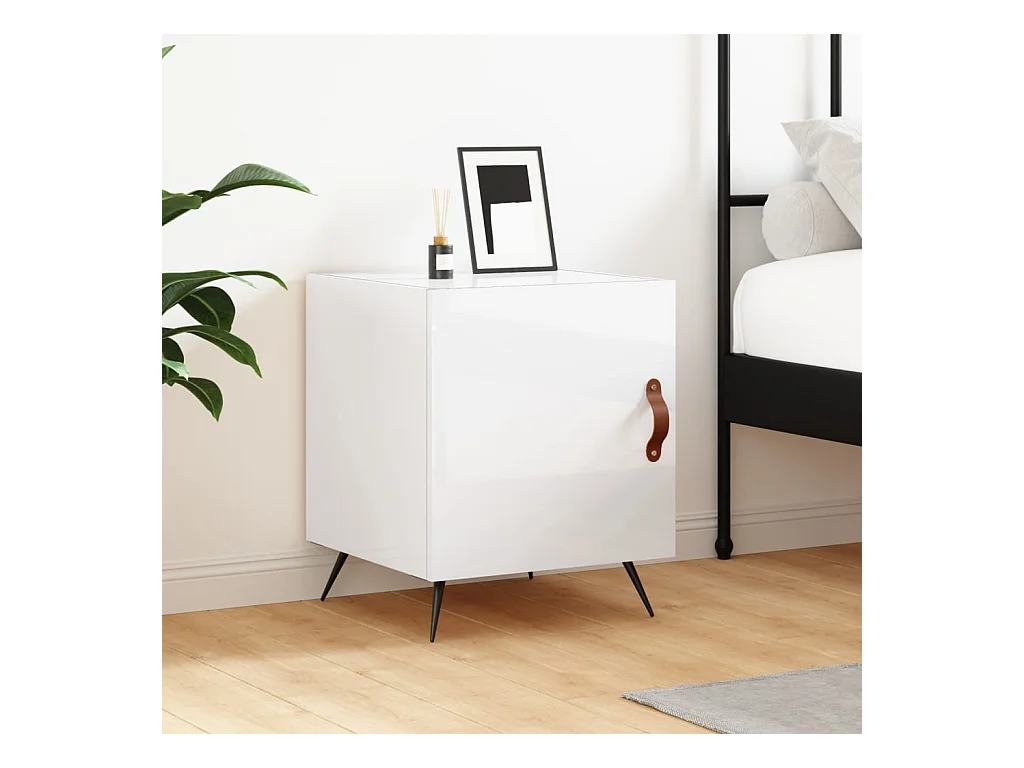 Table de chevet blanc brillant 40x40x50 bois d’ingénierie