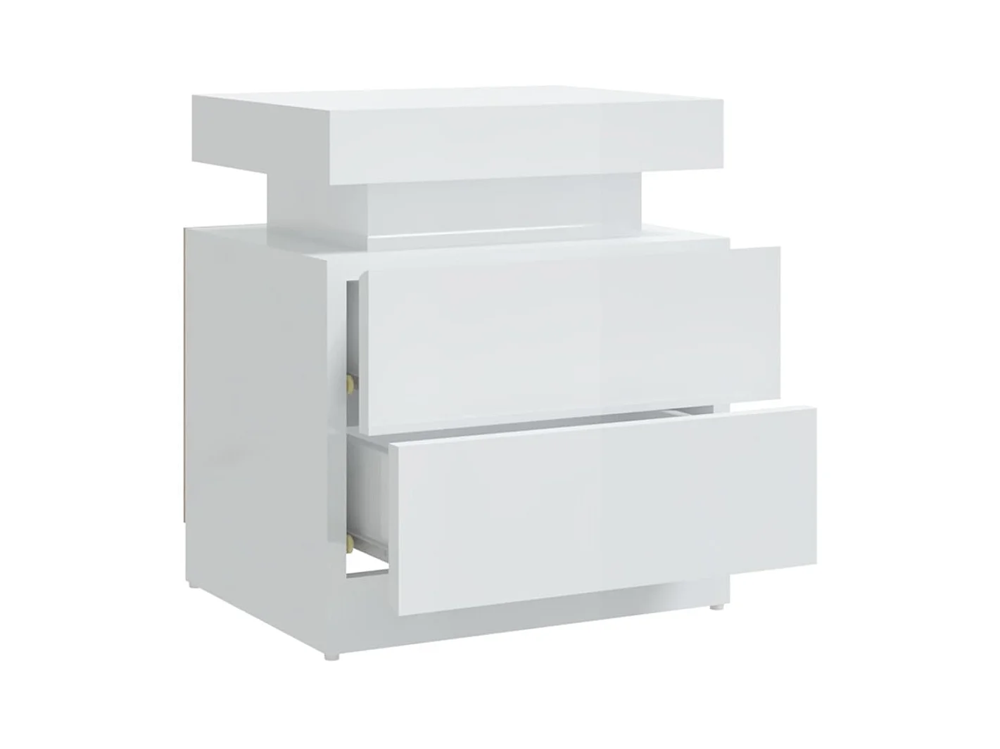 Armoires de chevet et lumières LED 2pcs blanc bois d'ingénierie
