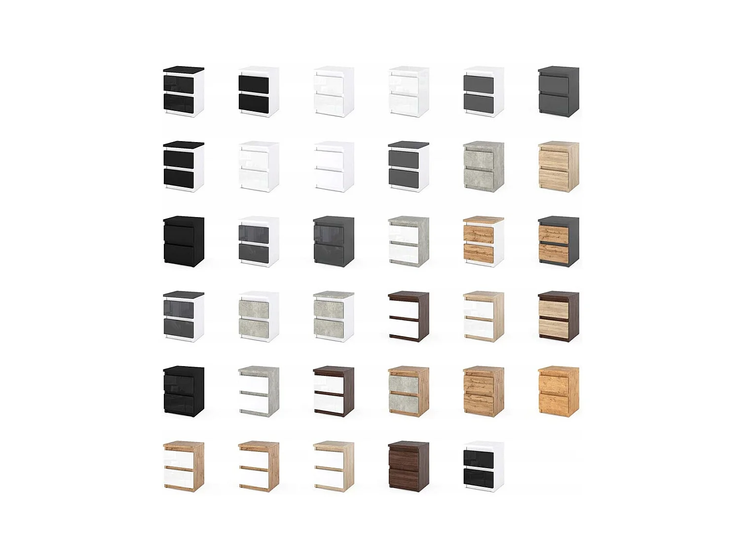Table de chevet gris 40 cm, 2 tiroirs, meuble de nuit pour chambre à coucher