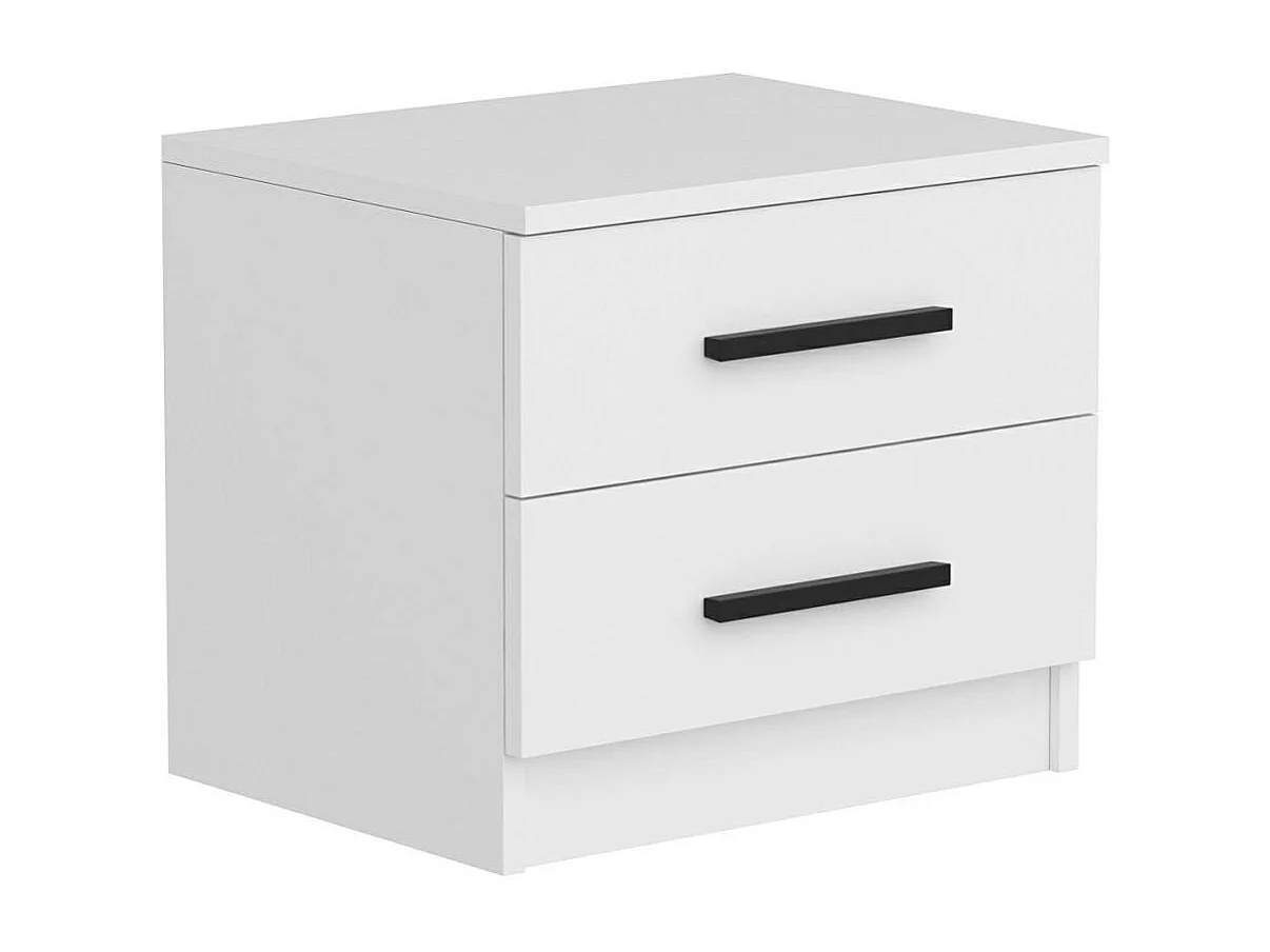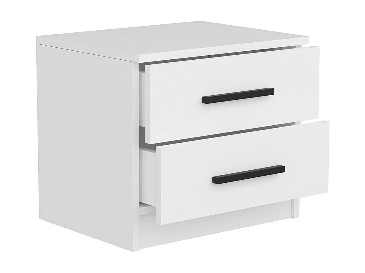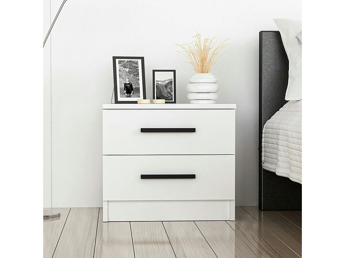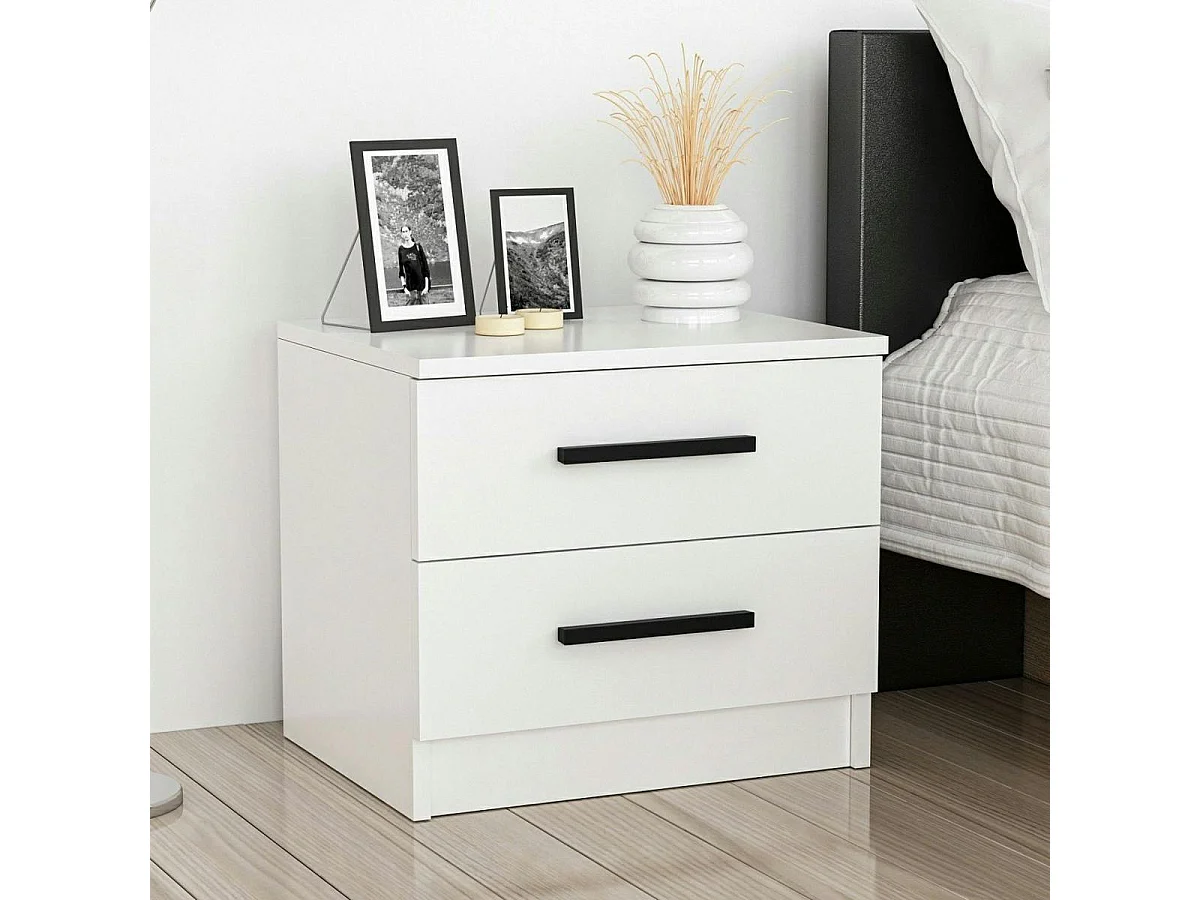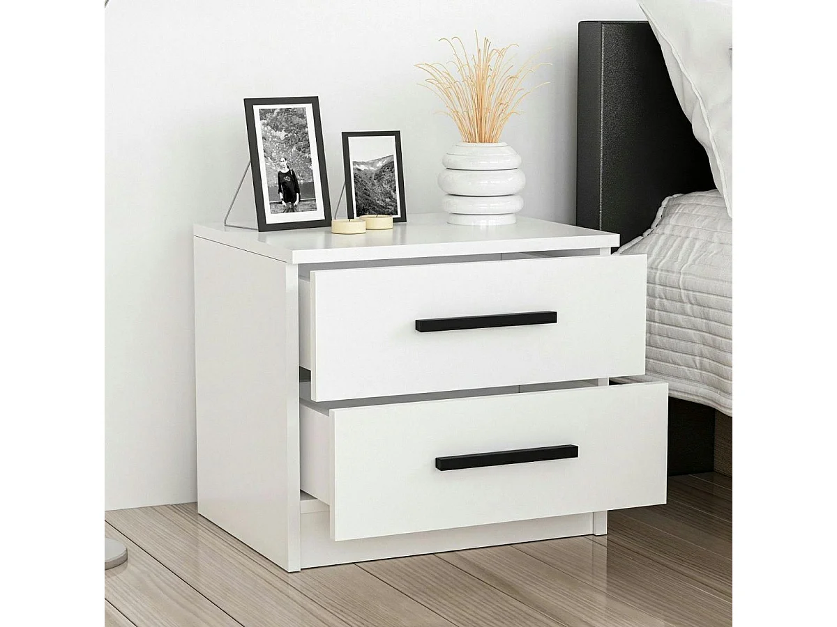 Table de chevet blanche 2 tiroirs à poignée baguette MARFA