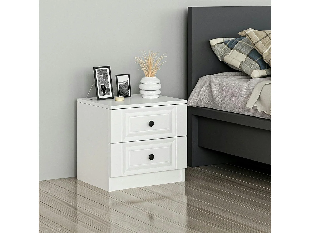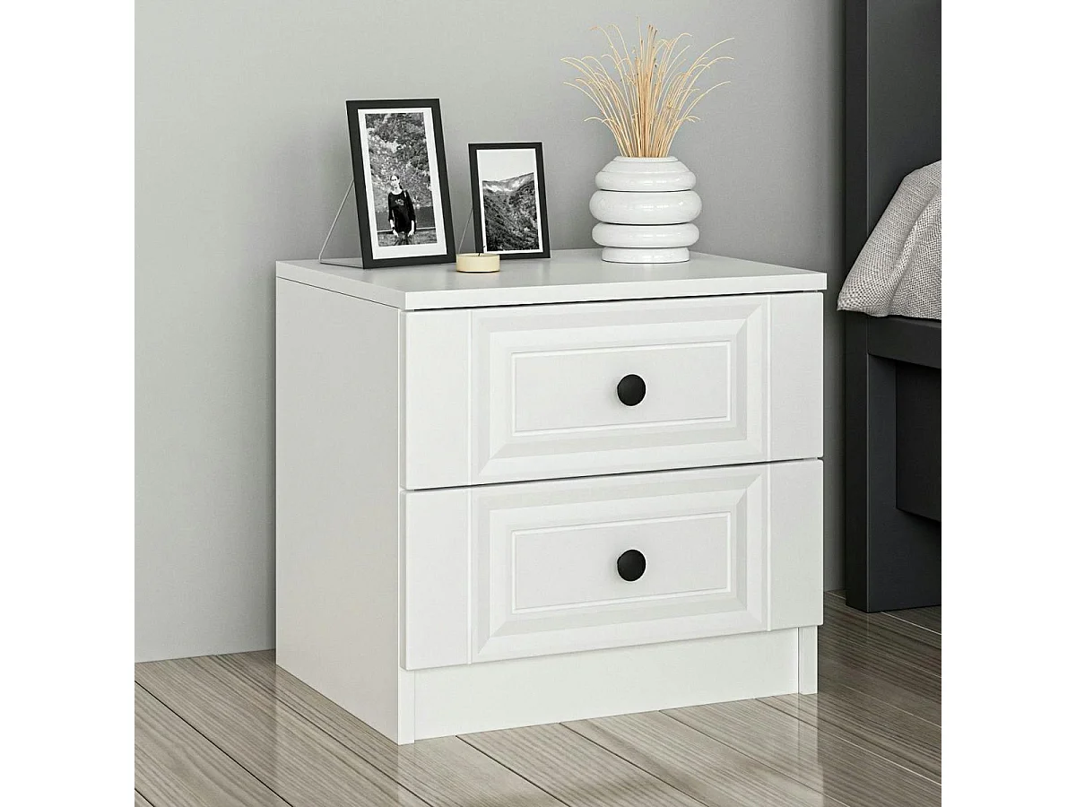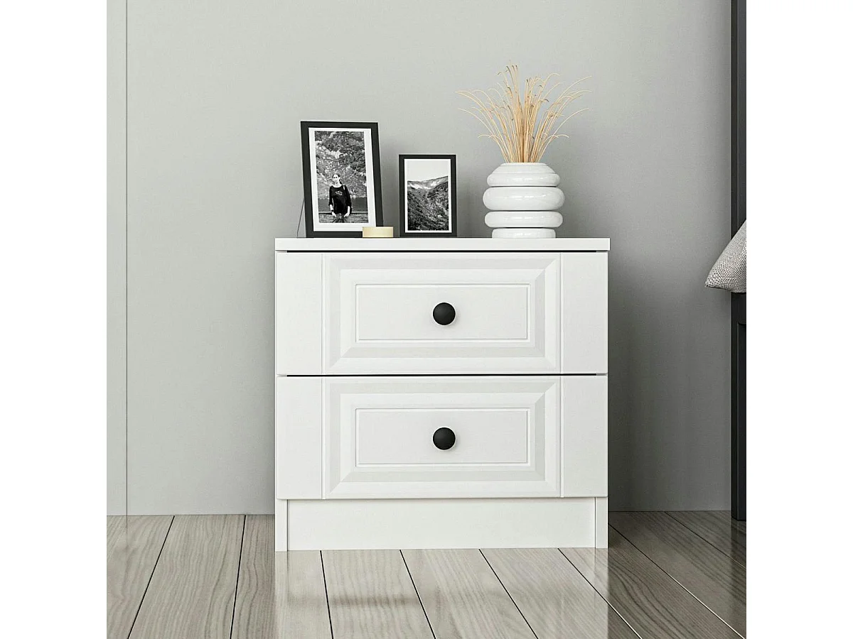 Table de chevet blanche 2 tiroirs avec moulures MARFA