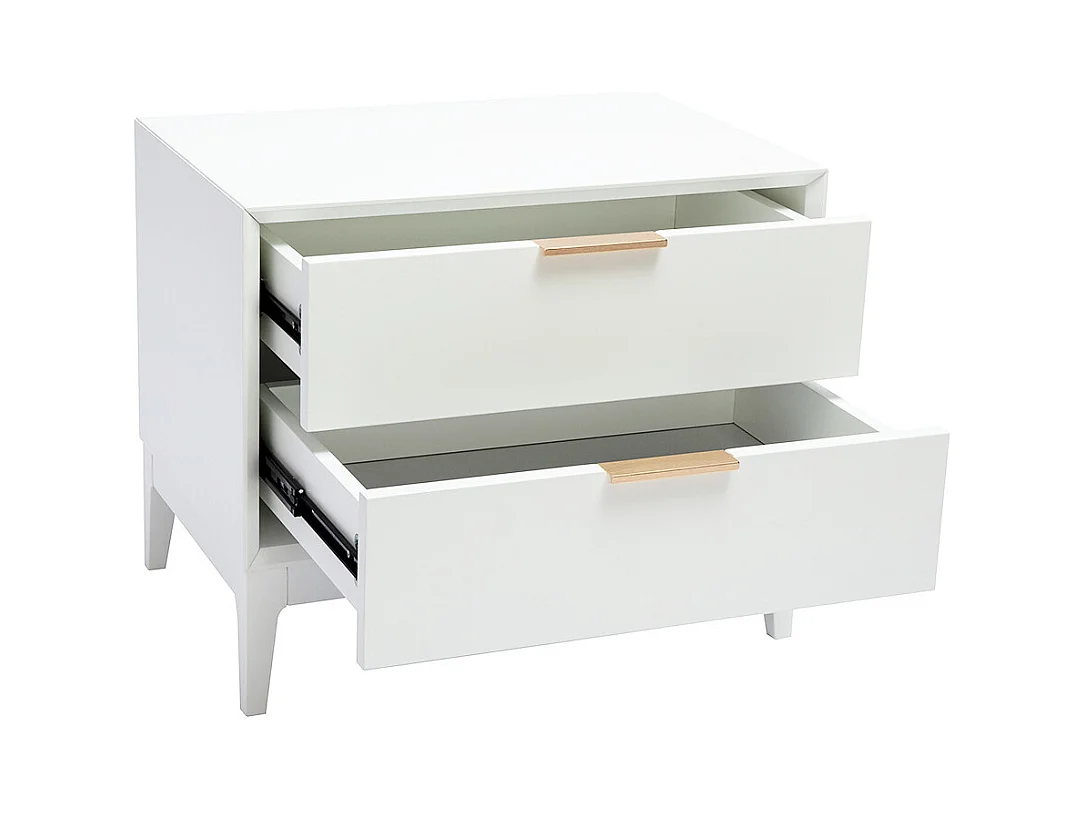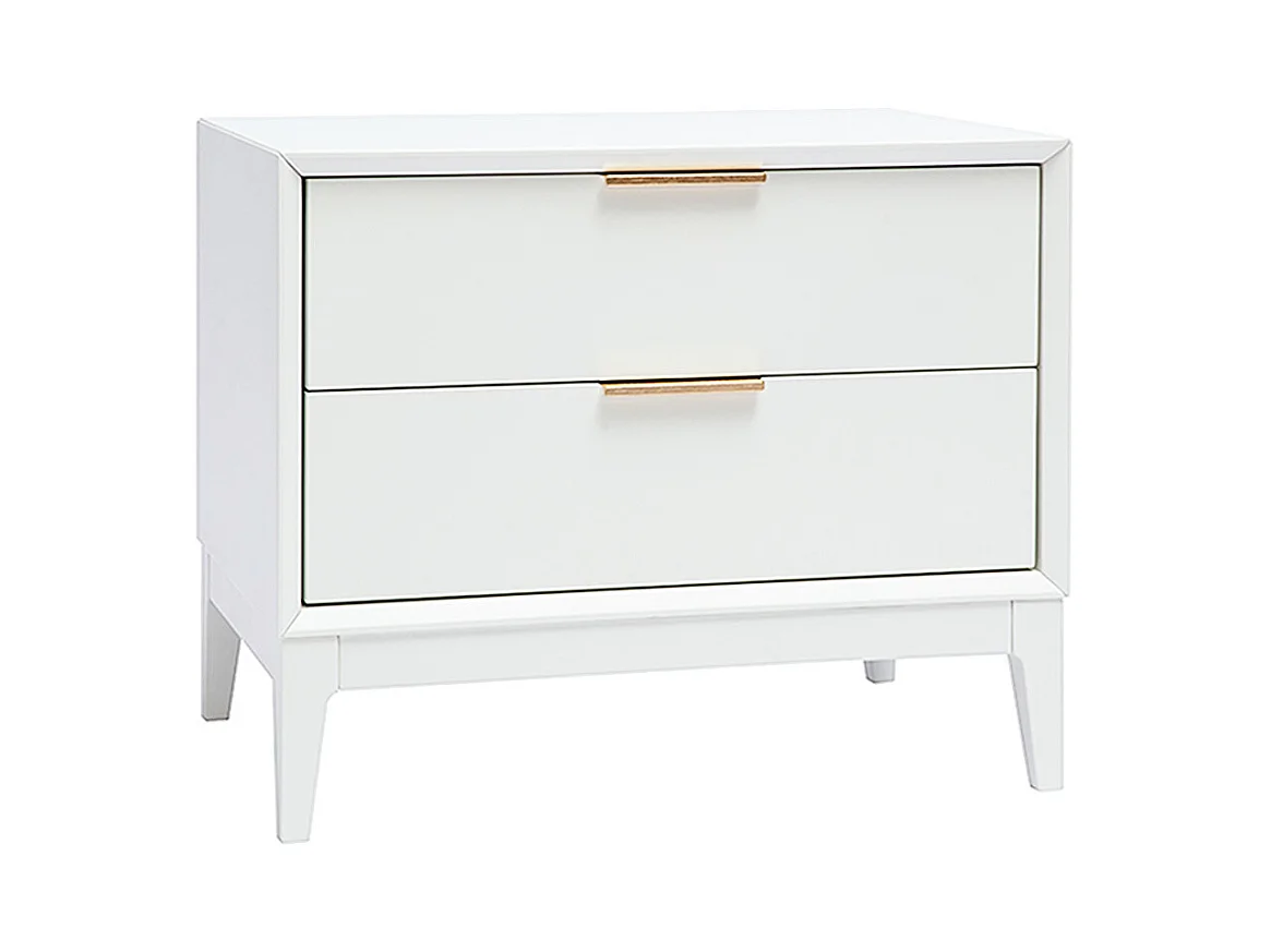Table de chevet blanche mat et métal doré avec rangements GIANA