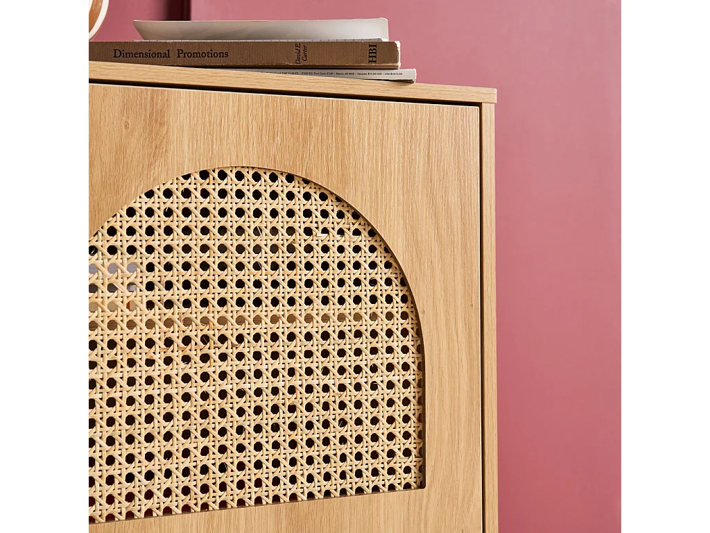 Table de chevet bohème bois et cannage naturel 1 porte 45 x 40 x 60 cm - Judith