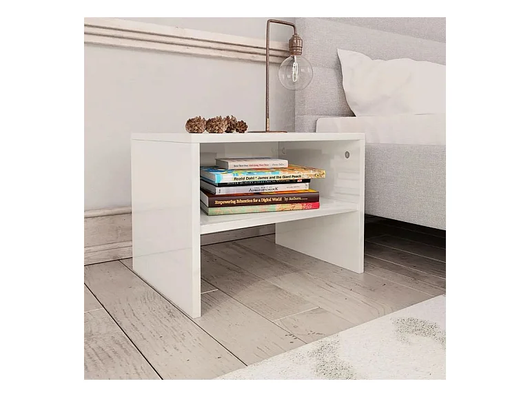 Table de chevet 2 étagères bois blanc brillant Fefi