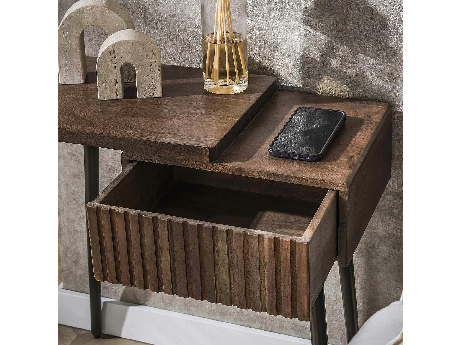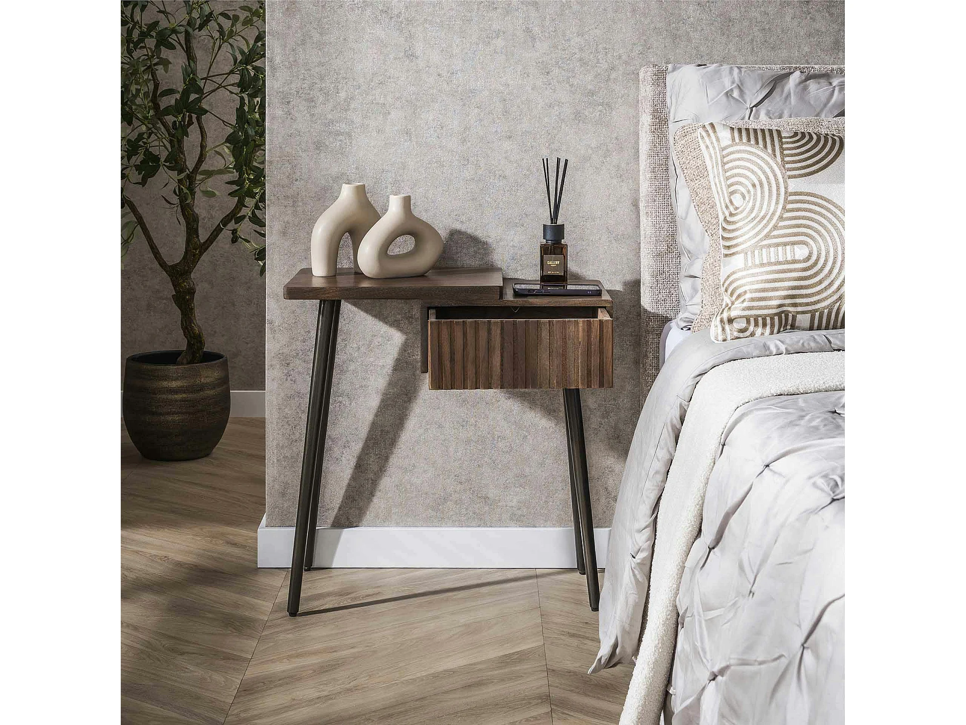Table de chevet bois brun 2 plateaux & tiroir rainuré (G) NAKO