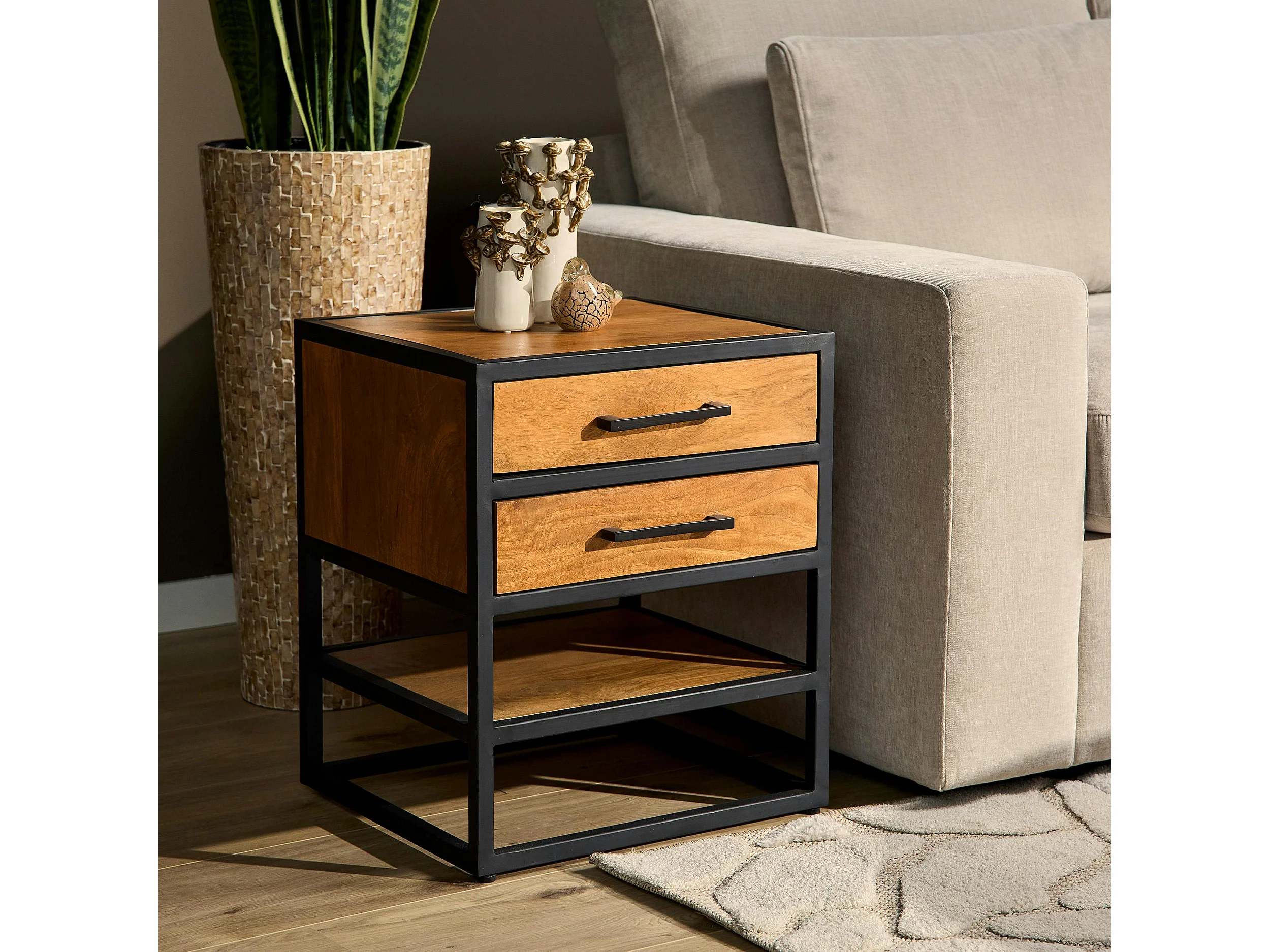 Table de chevet bois clair 2 tiroirs RIVANO