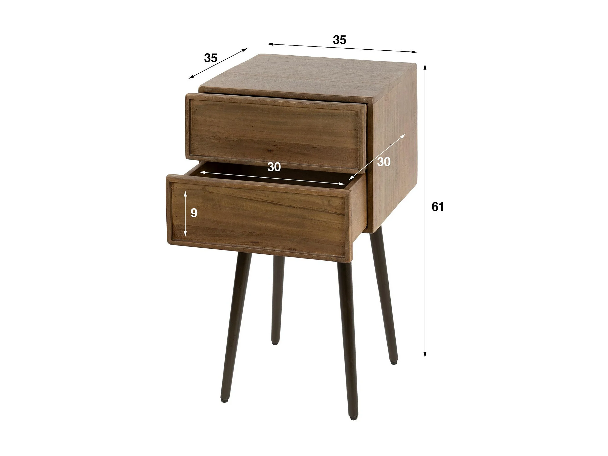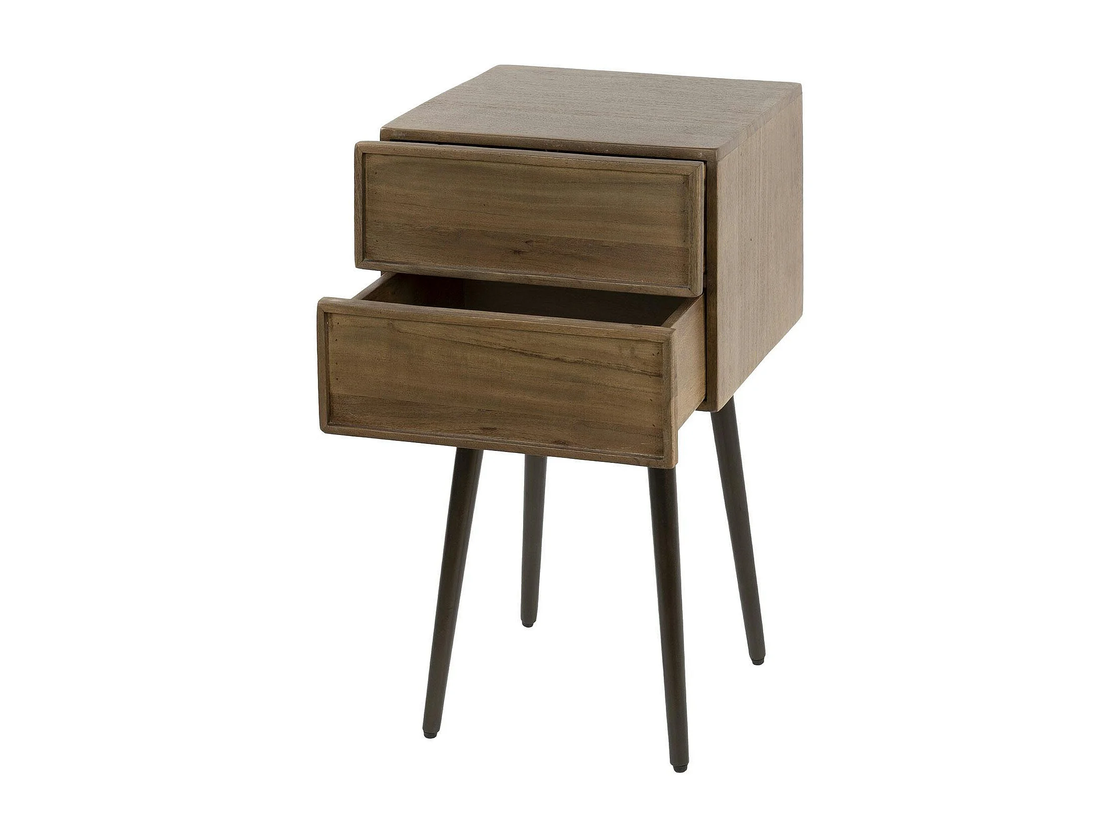 Table de chevet bois d’acacia brun, 2 tiroirs moulurés NAKO