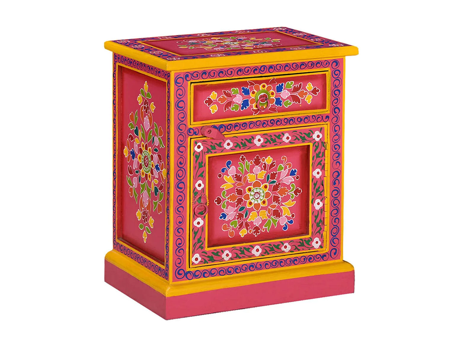 Table de chevet Bois de manguier massif Rose Peinture à la main