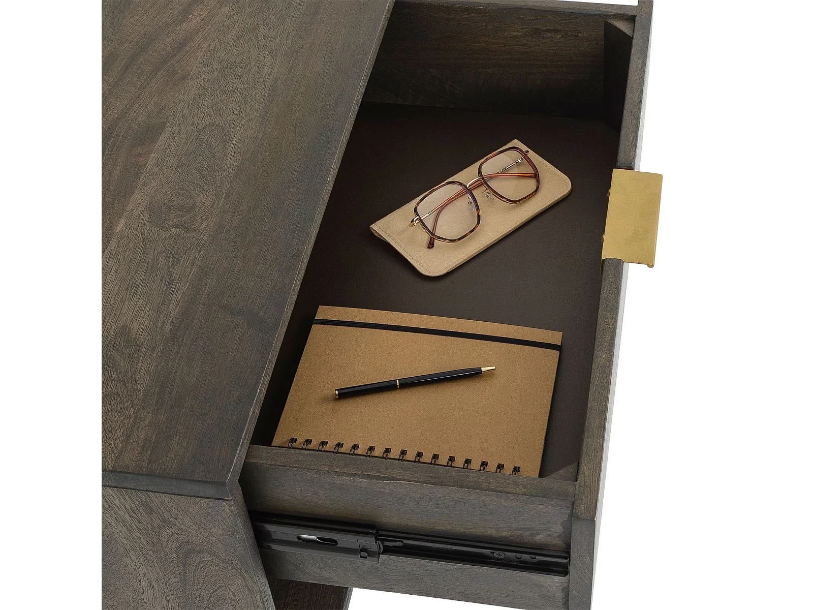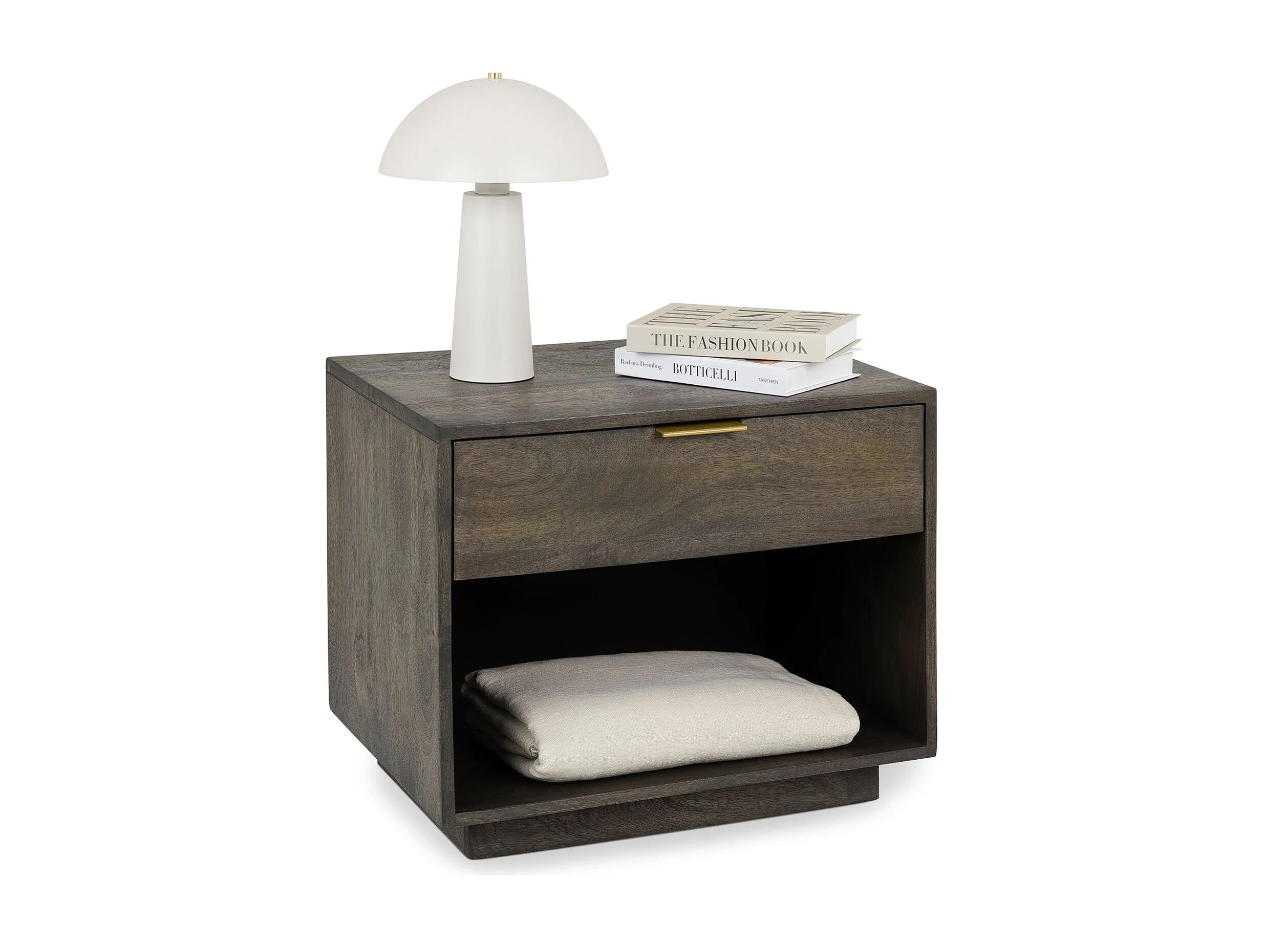 Table de Chevet BORA, 1 Tiroir en Bois Massif Brun, Design Élégant, Table de Nuit avec Niche Ouverte pour Rangement