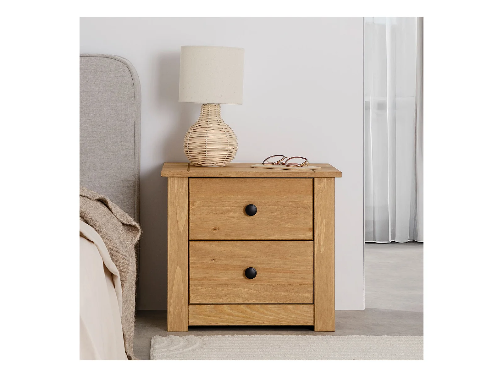 Table de chevet VENETA H 42 cm 2 Tiroirs en Bois Massif Coloris Naturel avec Poignées en Métal