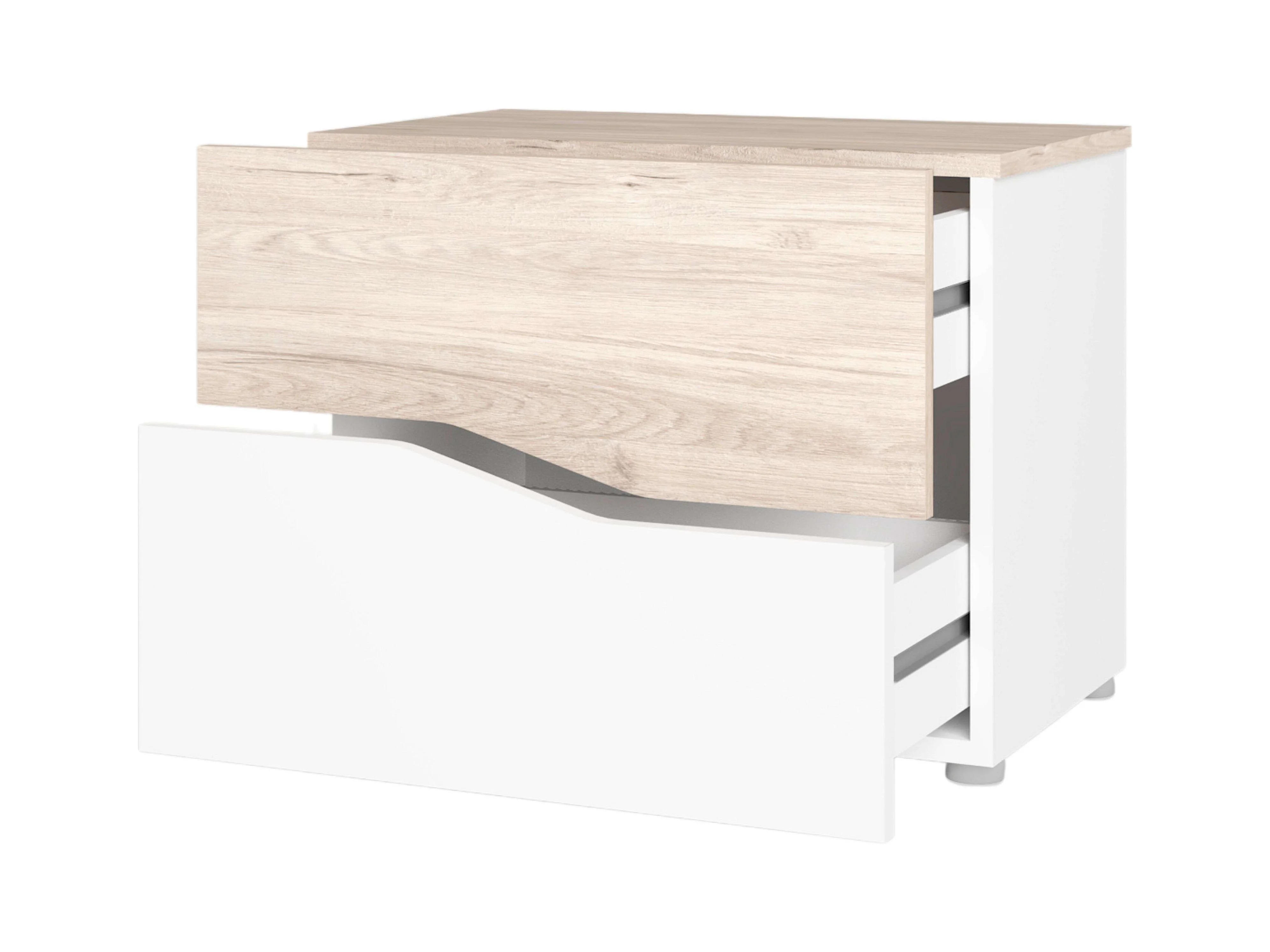 Table de chevet Cannes avec 2 tiroirs, couleur blanc et sahara, 54x42x35 cm