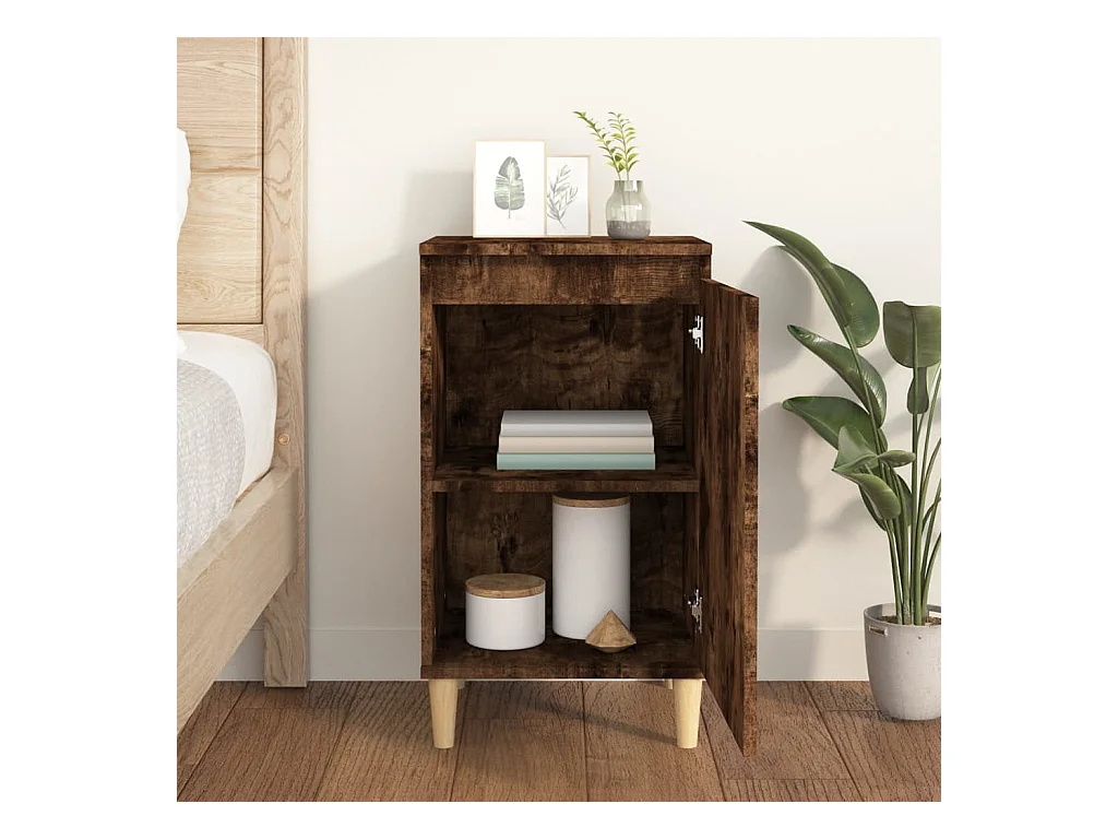 Table de chevet chêne fumé 40x35x70 bois d'ingénierie
