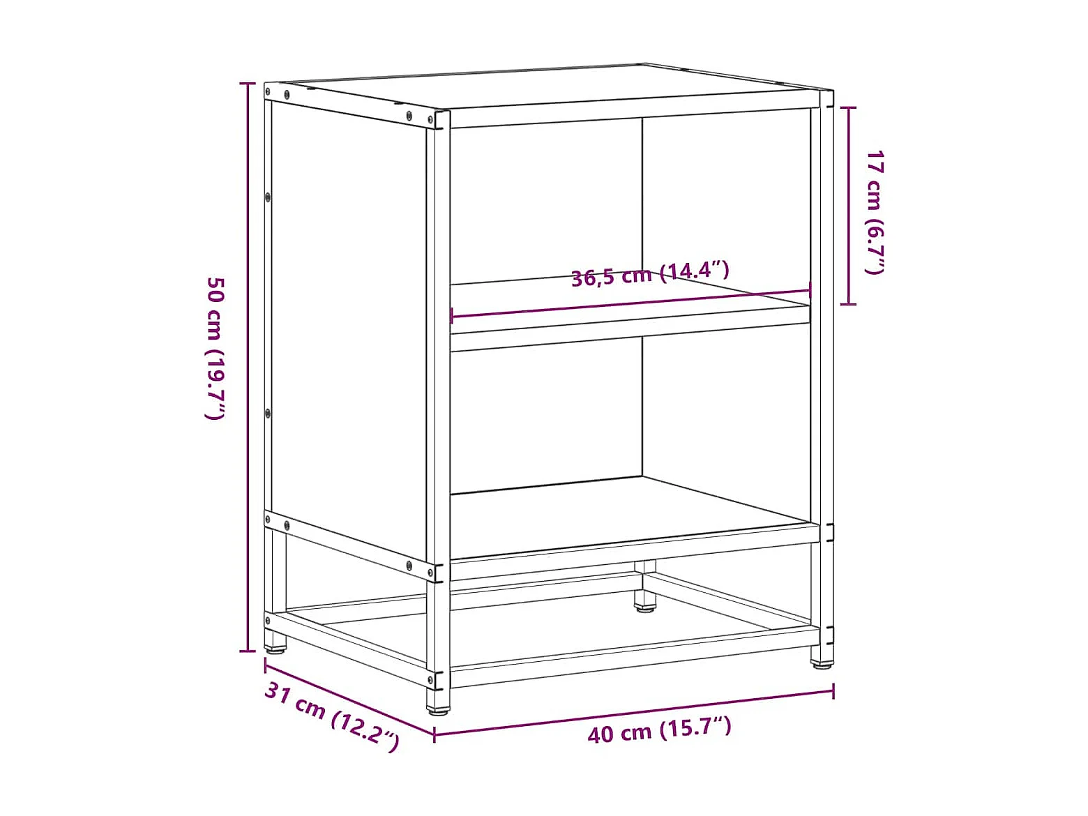 Table de chevet chêne fumé 40x31x50 cm bois d'ingénierie métal