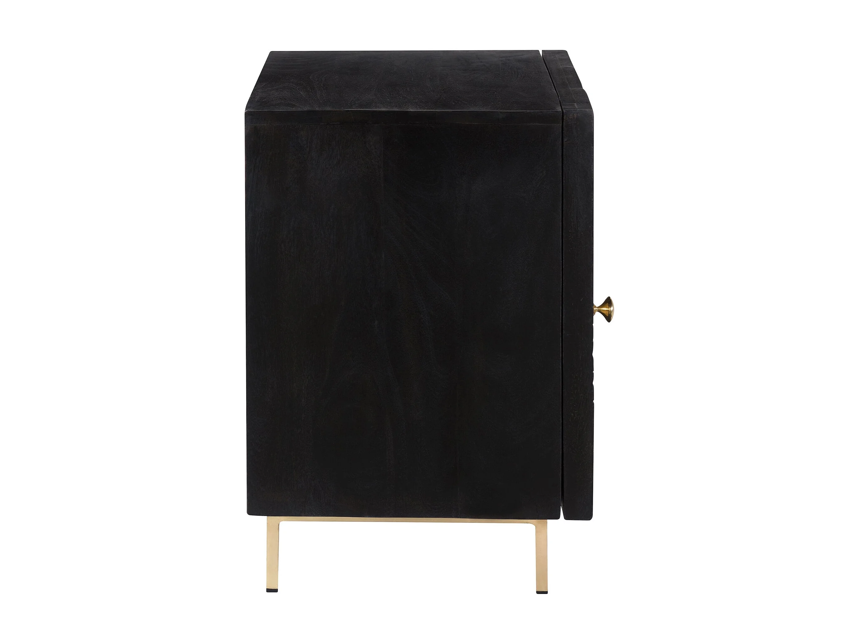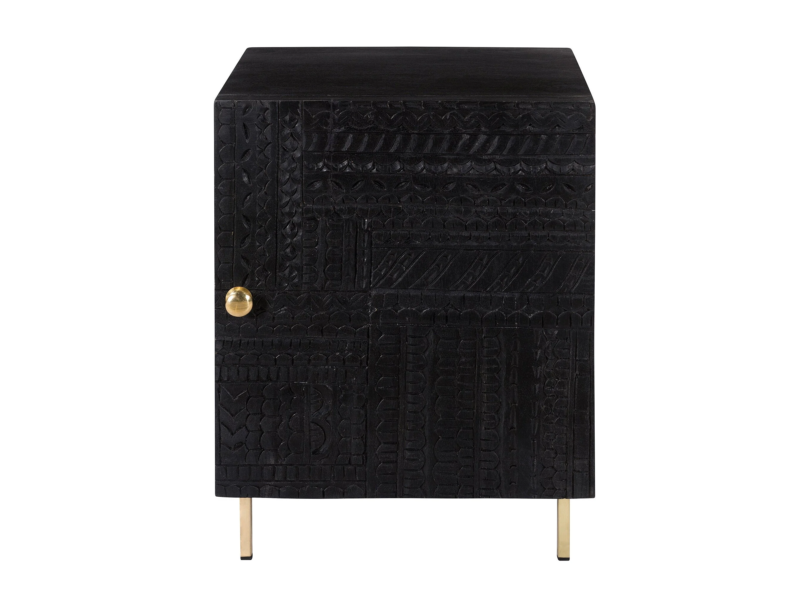 Chevet 1 porte en bois gravé noir et métal doré - Chimane