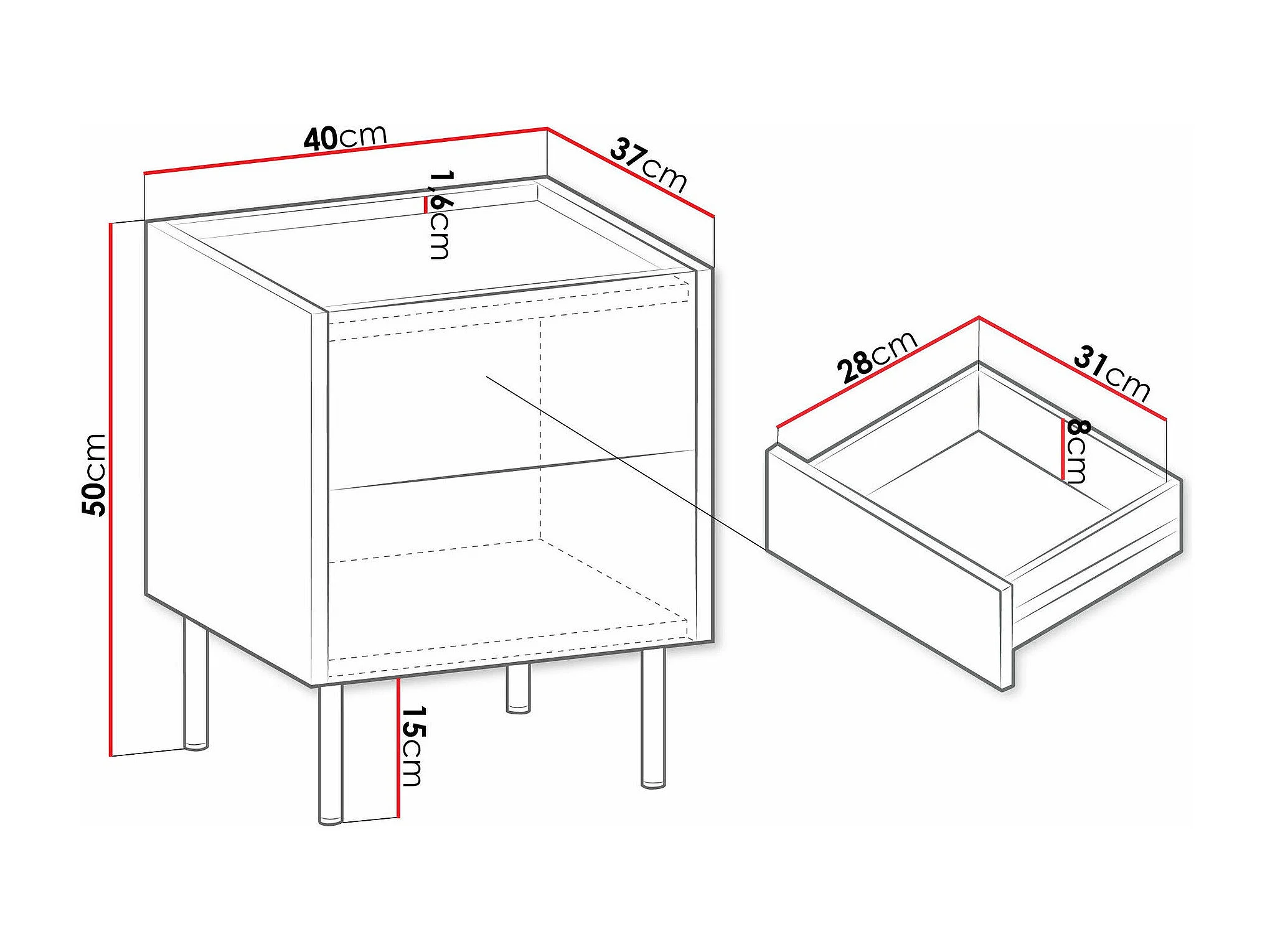Table de chevet Comfivo Belviro 106, Marbre noir|Noyer, 50x40x37cm, Stratifié