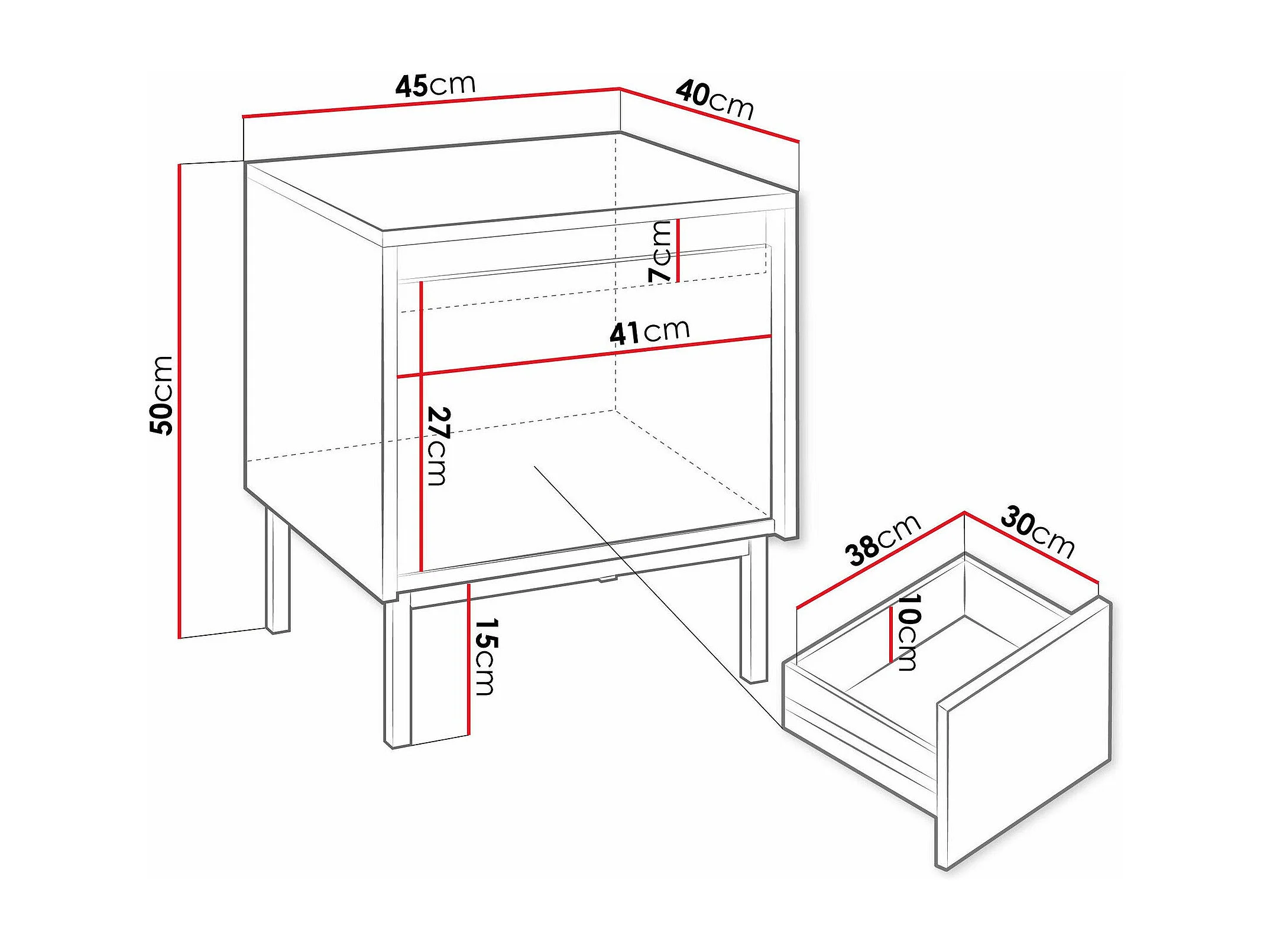 Table de chevet Comfivo Delruva 105, Noir, 50x45x40cm, MDF|Stratifié