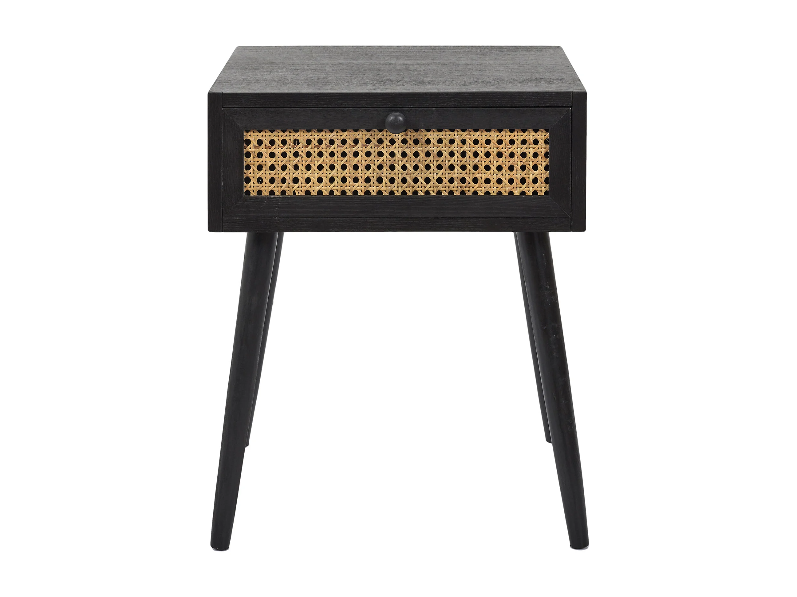 Table de chevet design avec cannage et tiroir de rangement en pin noir