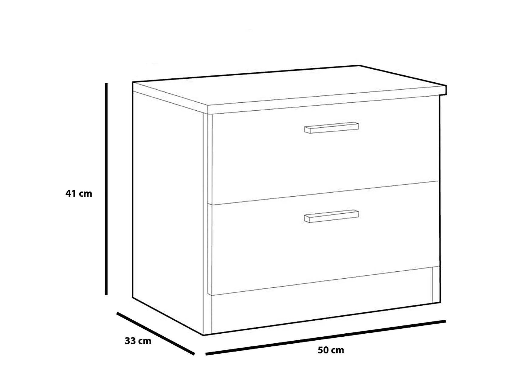 Table de Chevet Dublin 2 tiroirs en Couleur Blanc, Guides métalliques