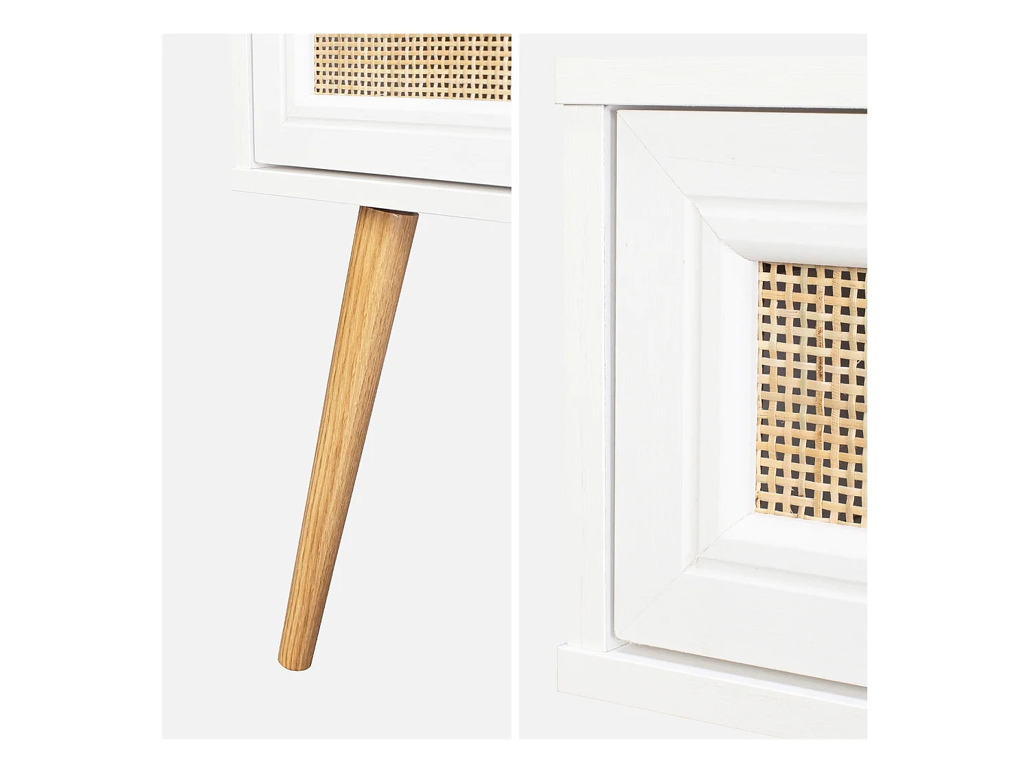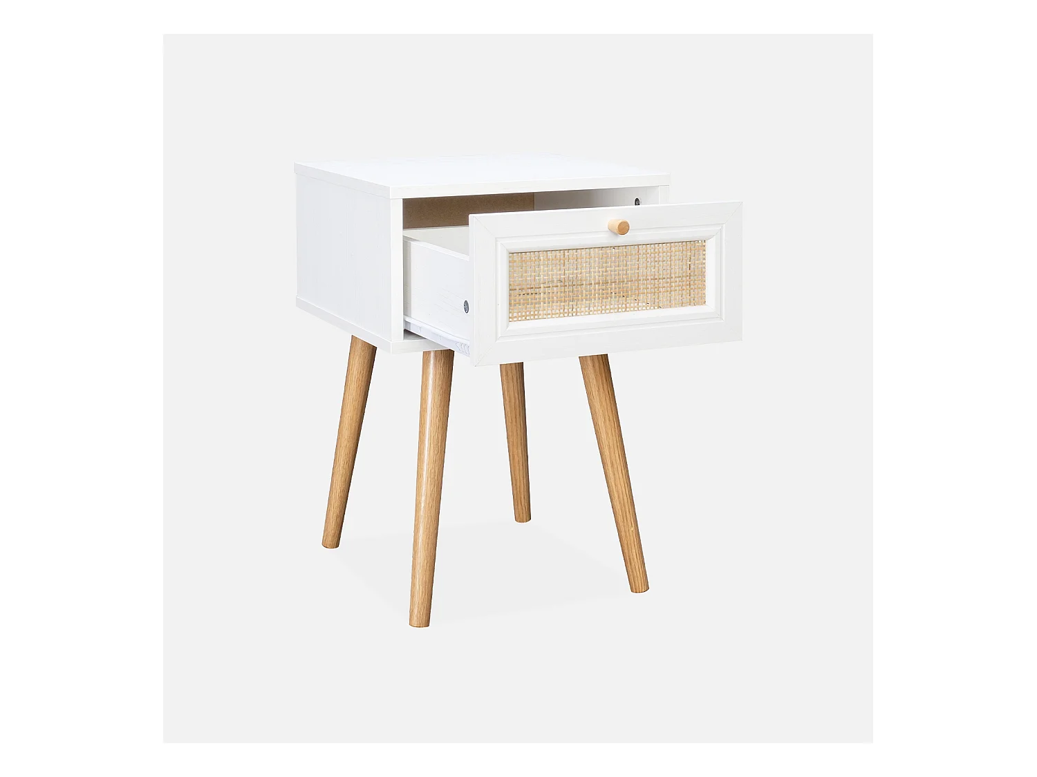 Table de chevet décor bois & cannage avec 1 tiroir - coloris blanc - Bohème