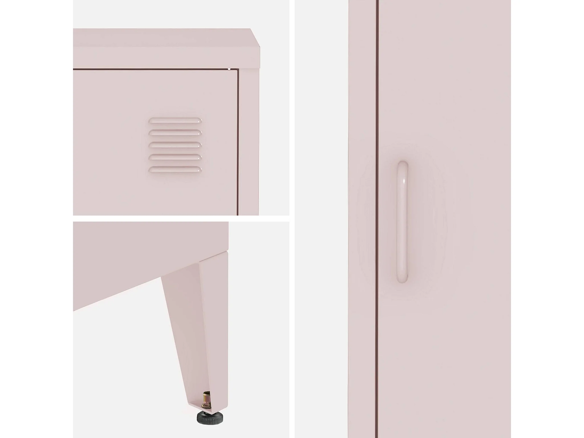 Table de chevet en acier rose. 1 porte. casier. chambre enfant