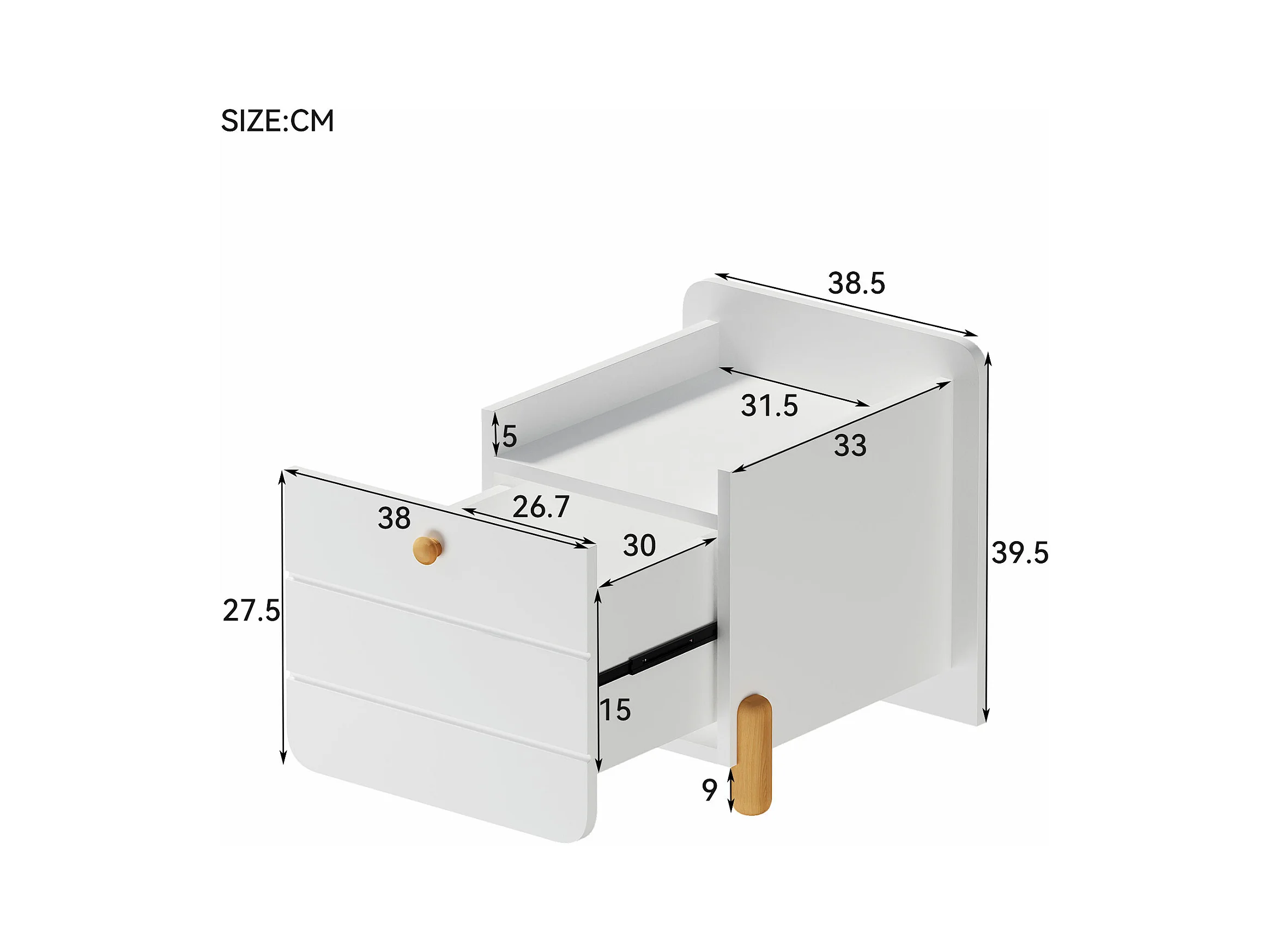 Table de chevet suspendue avec tiroir, façade rainurée, Couleur : blanc, 40 x 20 x 16 cm