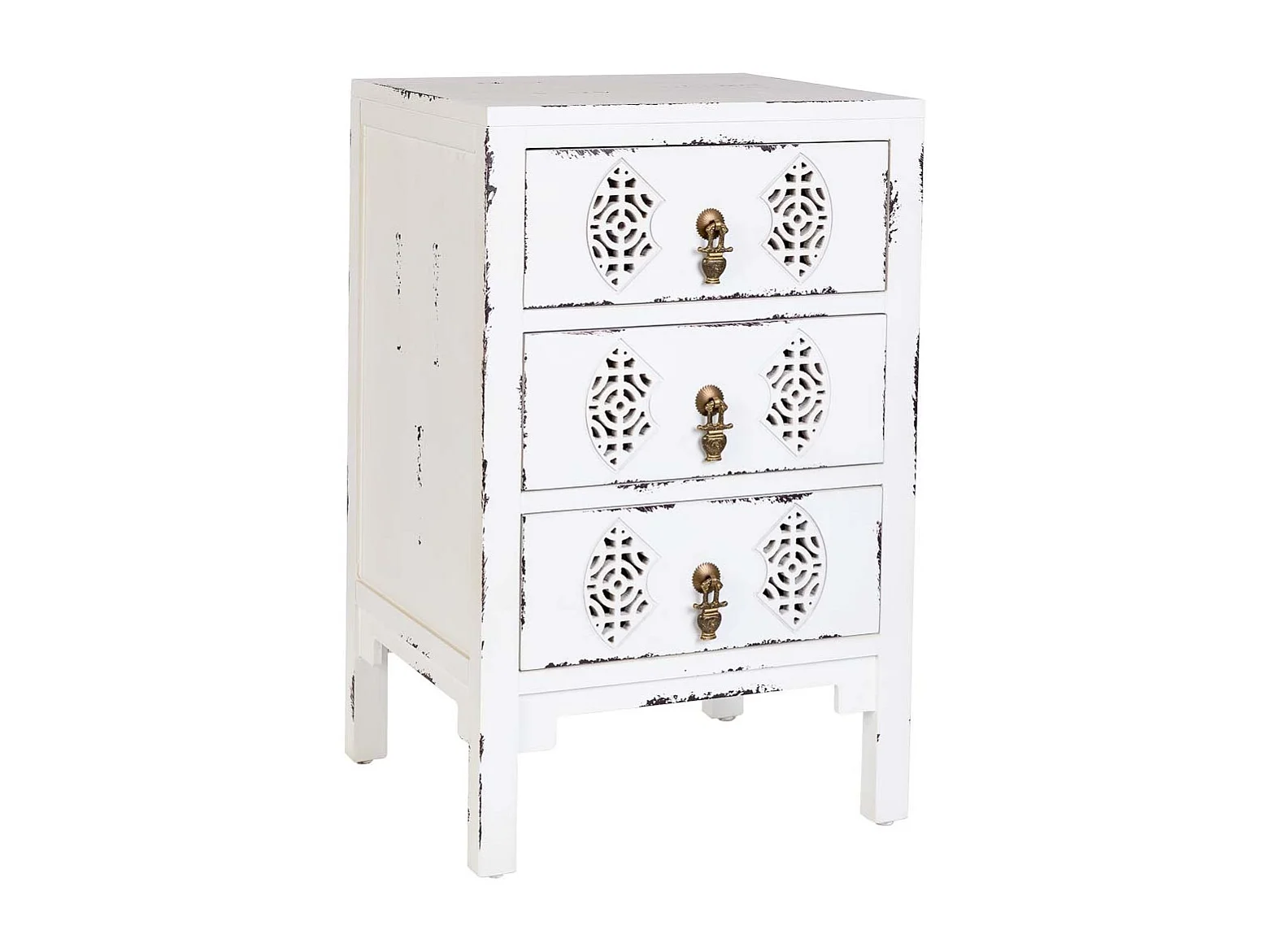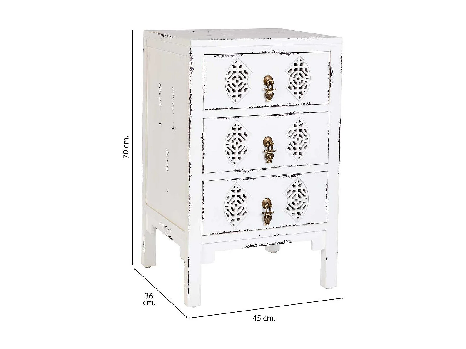 Table de chevet en bois avec 3 tiroirs blanc 45 x 36 x 70 cm