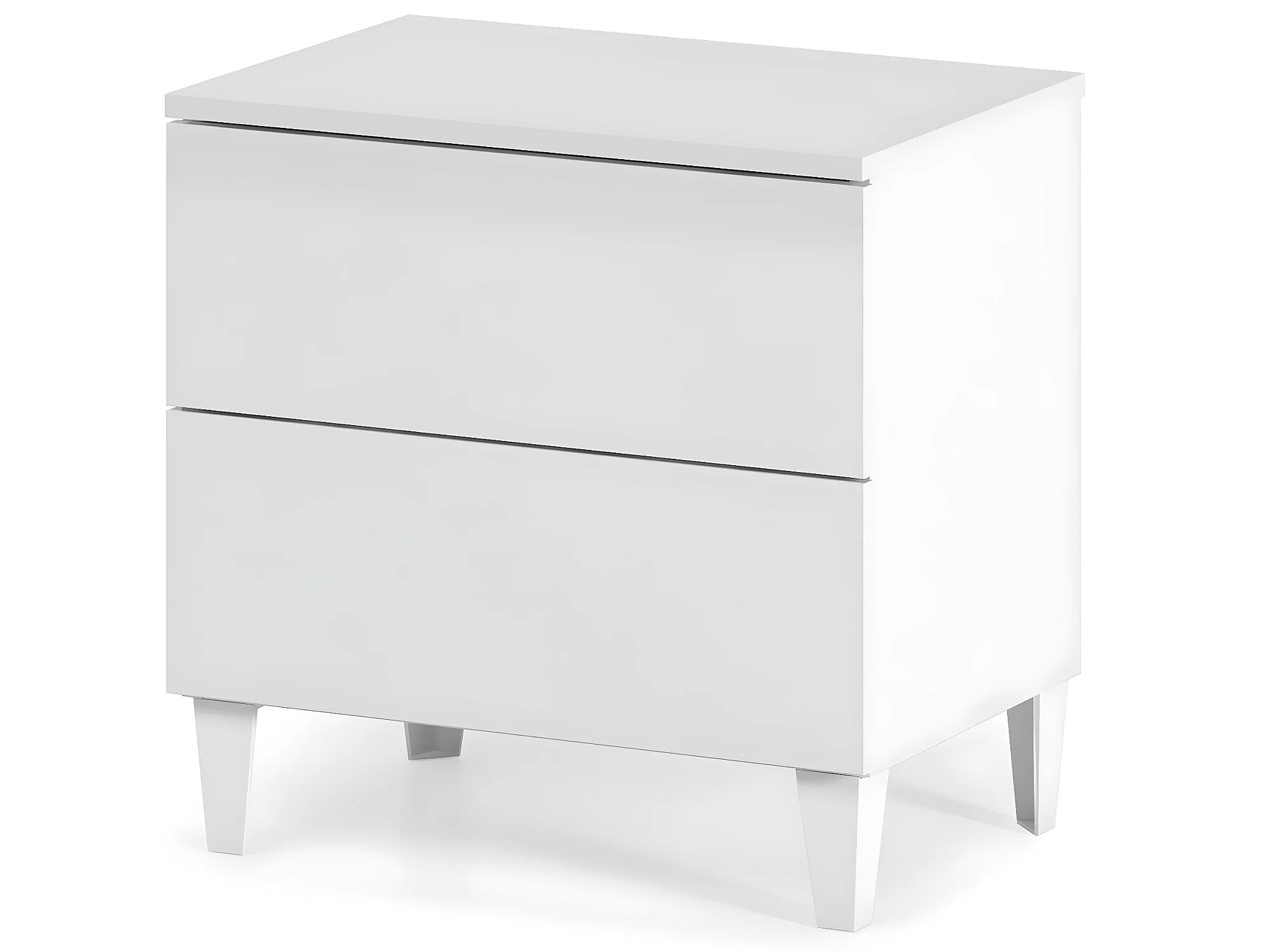 Table de chevet en bois coloris blanc brillant avec 2 tiroirs - Dim : 49 x 50 x 34 cm