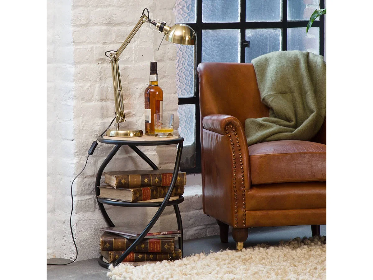 Lampe Projecteur en métal Bronze et pied en Bois H 68 cm