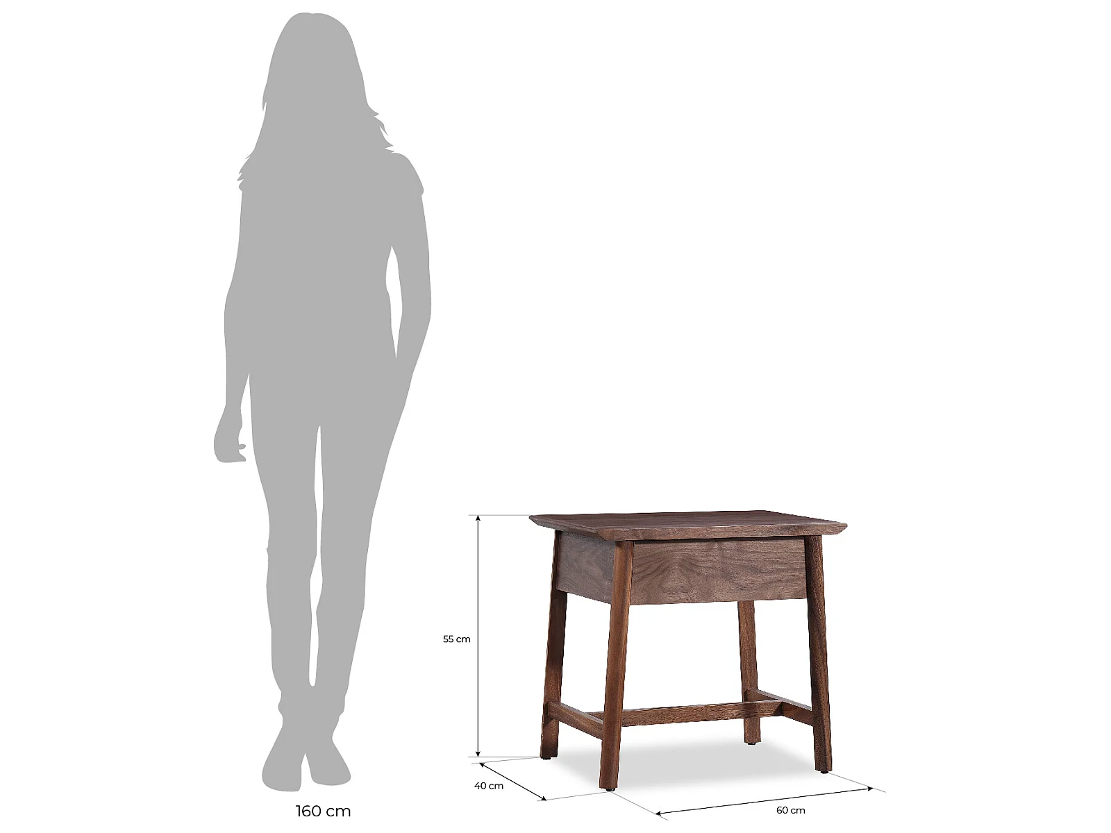 Table de Chevet en Bois de Noyer Inari Pärumm 1 Tiroir 60x40x55 cm