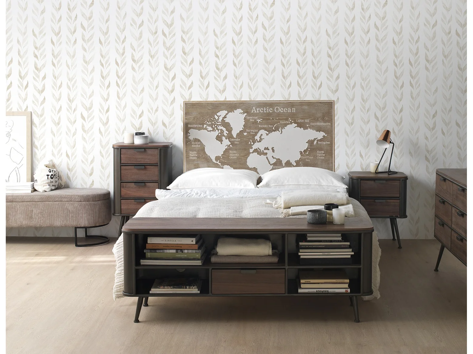 Table de chevet métallique avec plateau et 2 tiroirs en bois de sapin