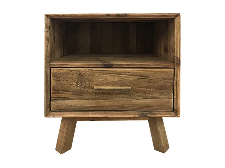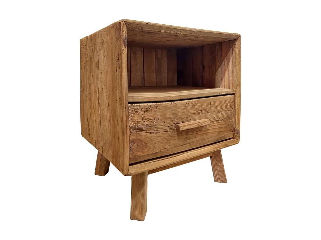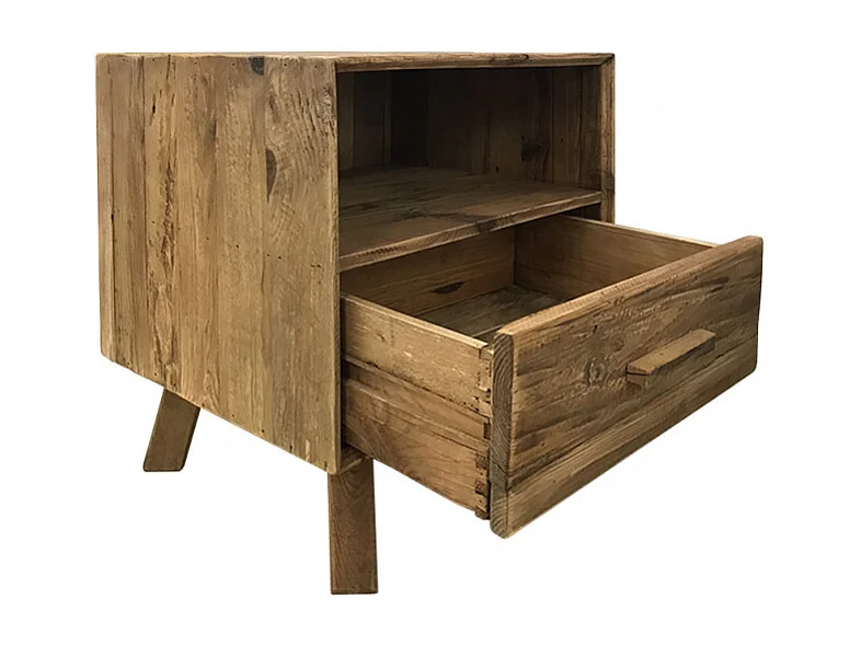 Table de chevet en pin massif recyclé 1 tiroir et 1 niche - CHALET