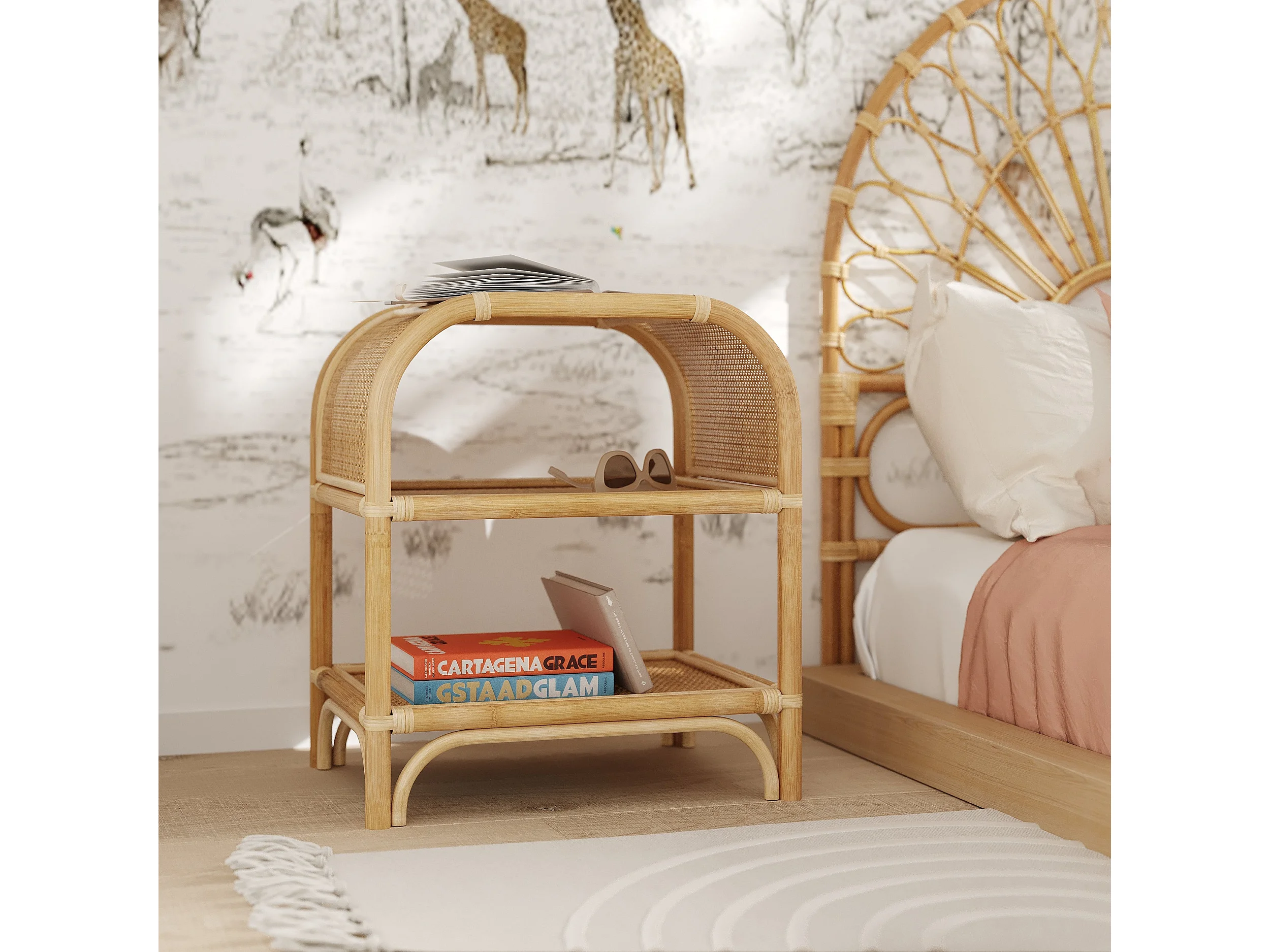 Table de chevet avec étagères en rotin - Gaspy