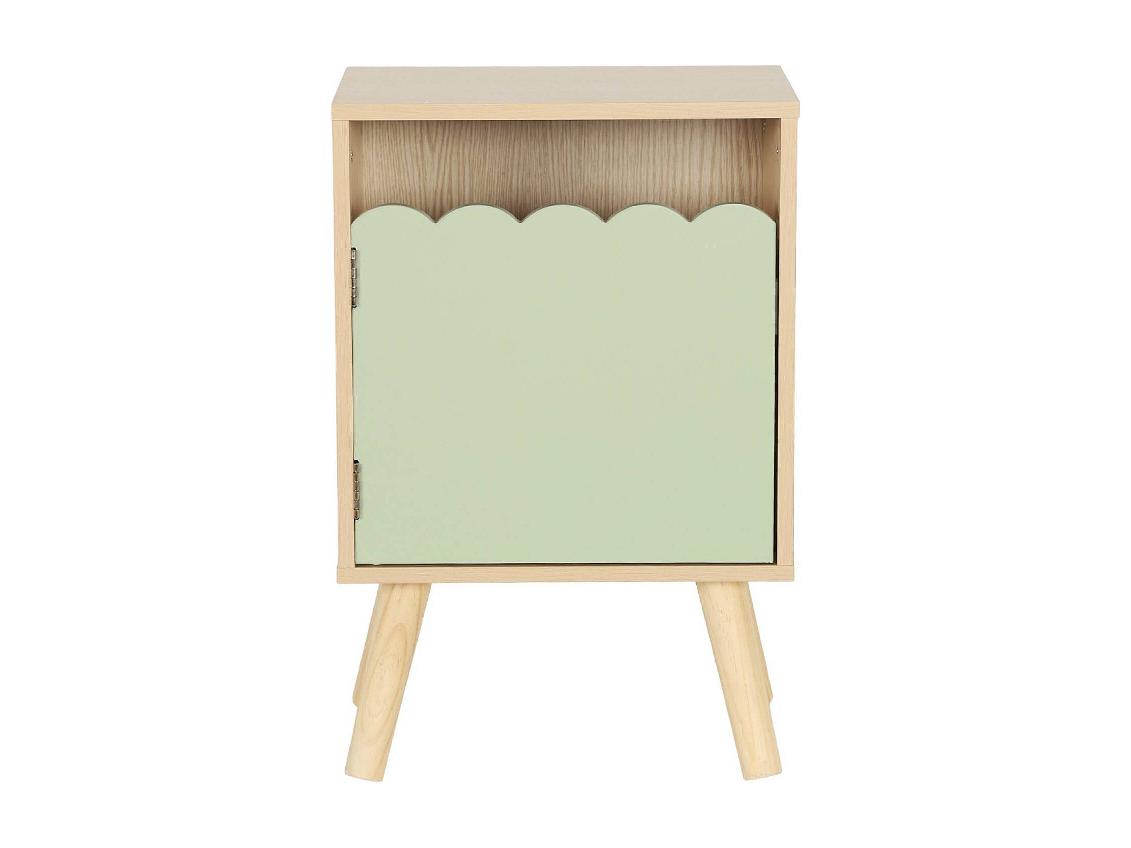 Table de chevet enfant décor bois vert 1 porte. pieds bois de pin - 34 x 23.5 x 52 cm - Azur