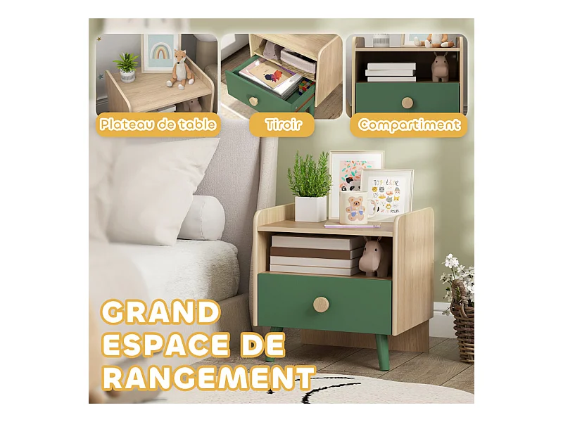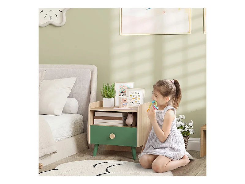 Table de chevet enfant LEONIS bois et vert