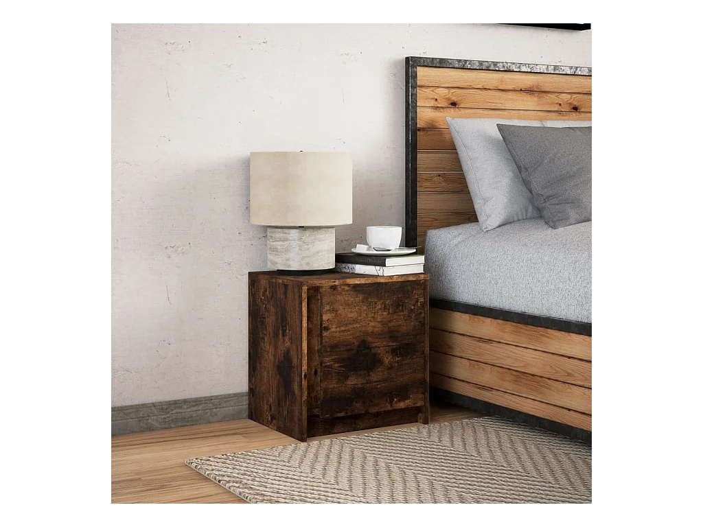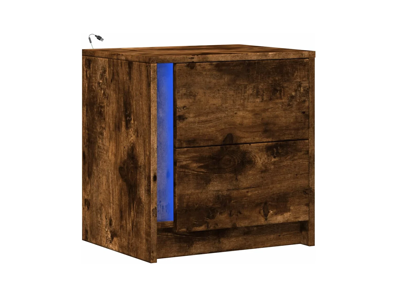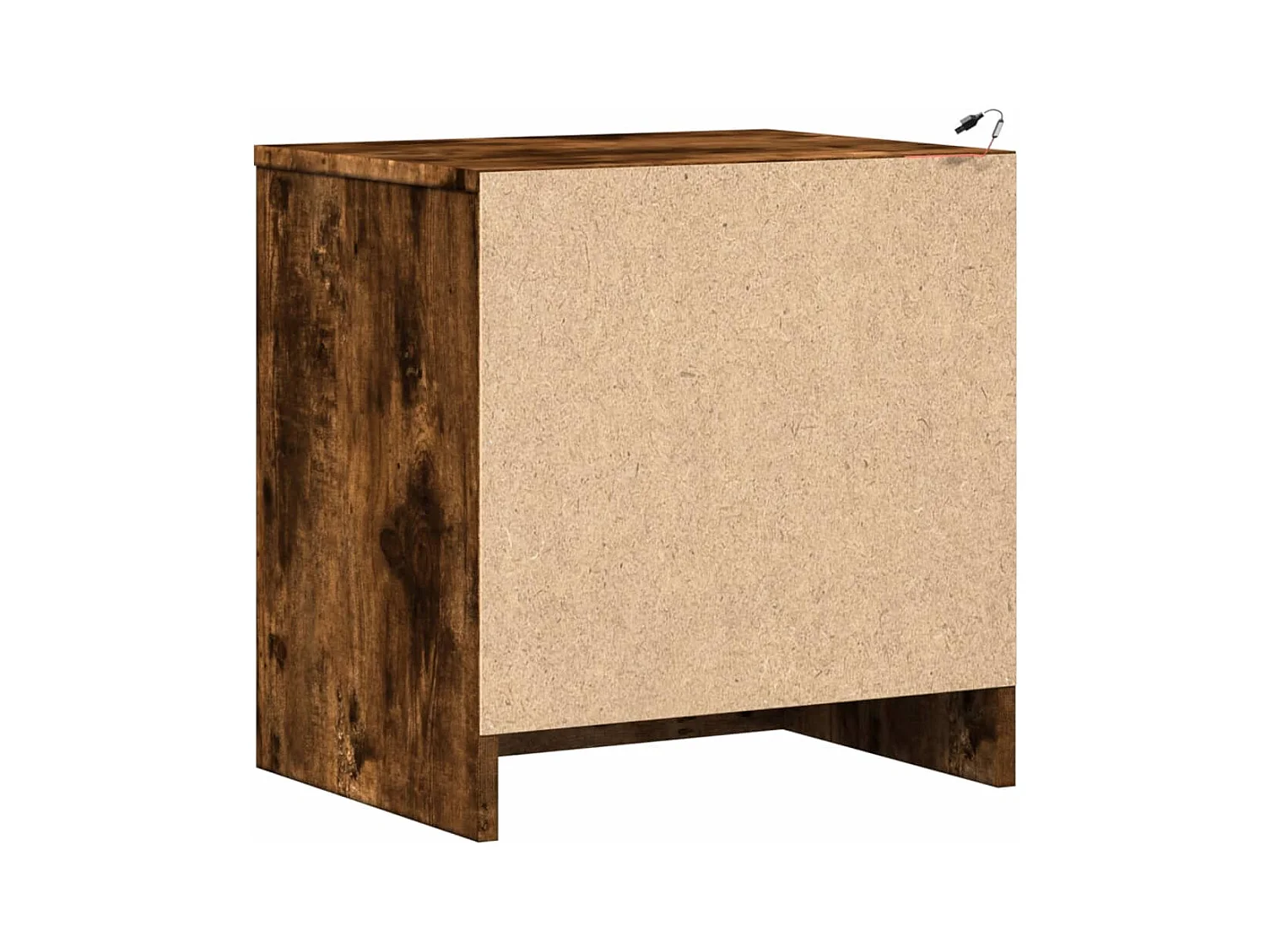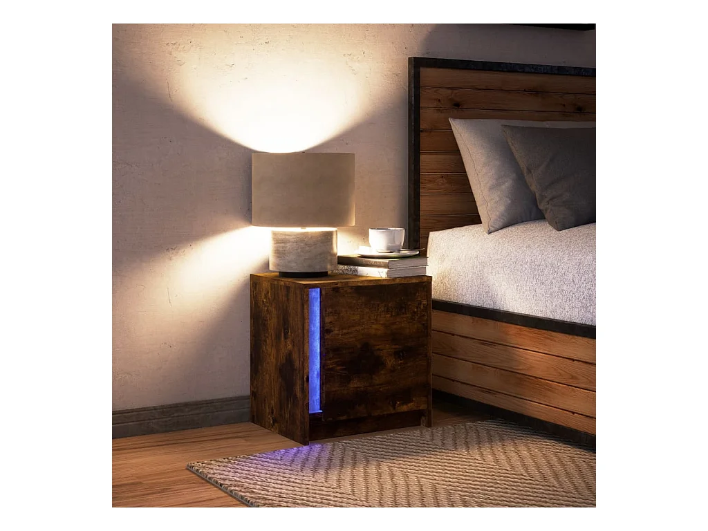 Table de chevet et lumières LED chêne fumé bois d'ingénierie