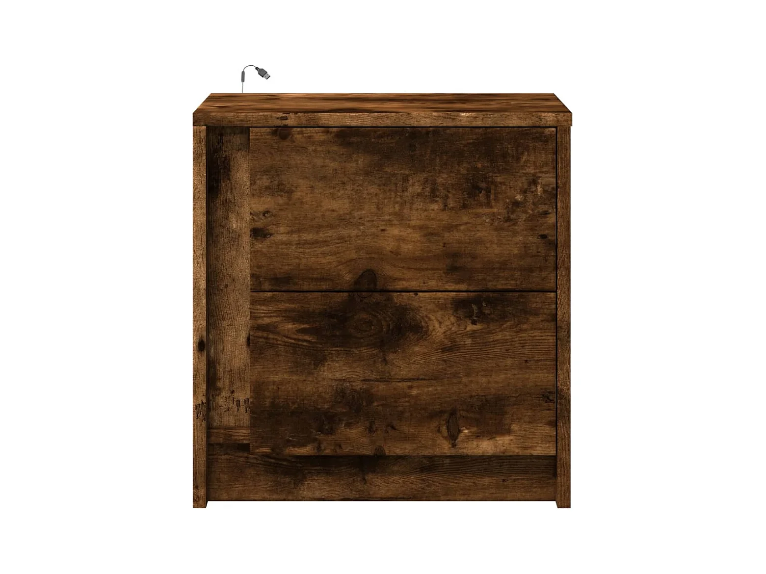 Tables de chevet et lumières LED 2 pièces chêne fumé