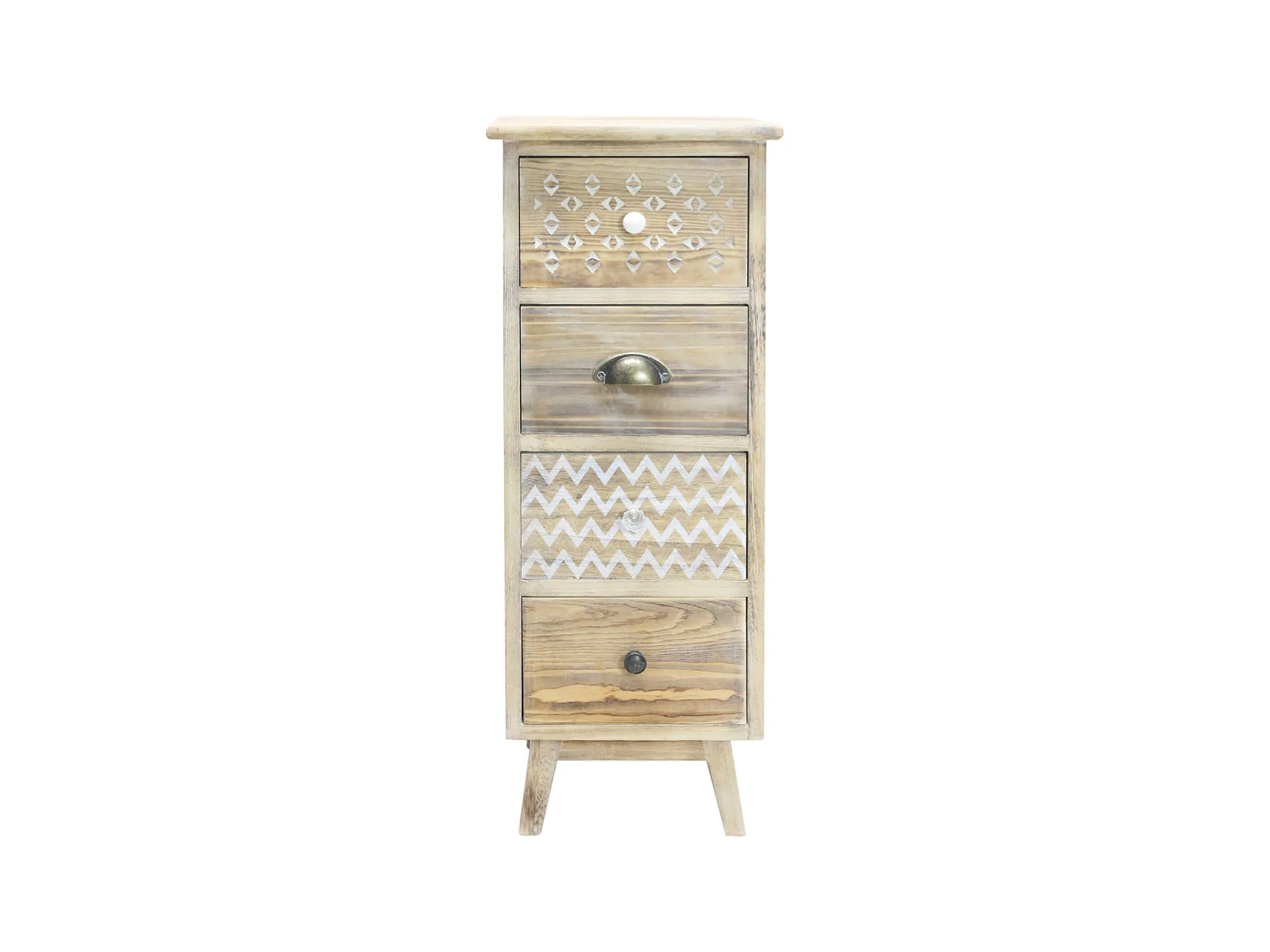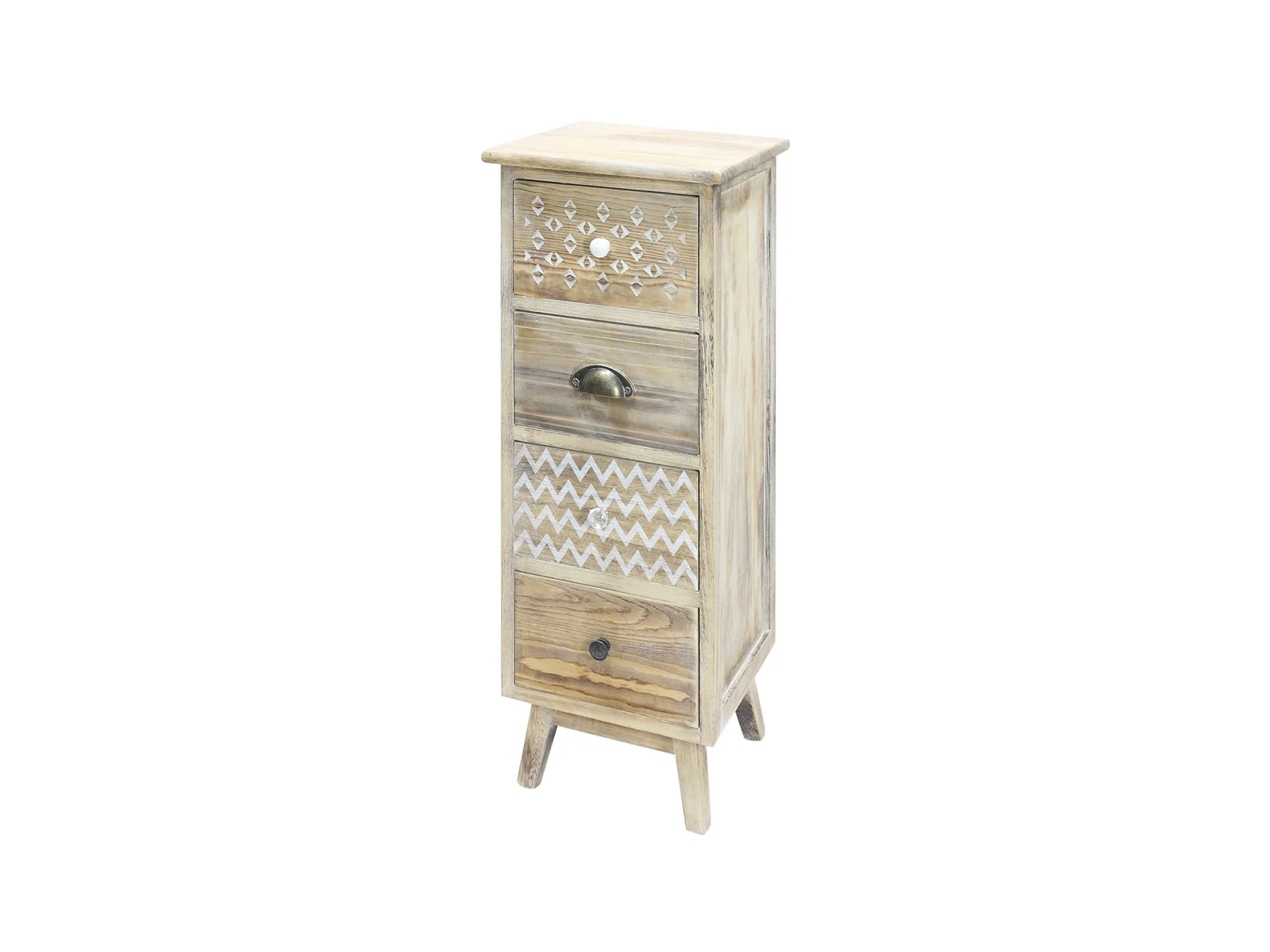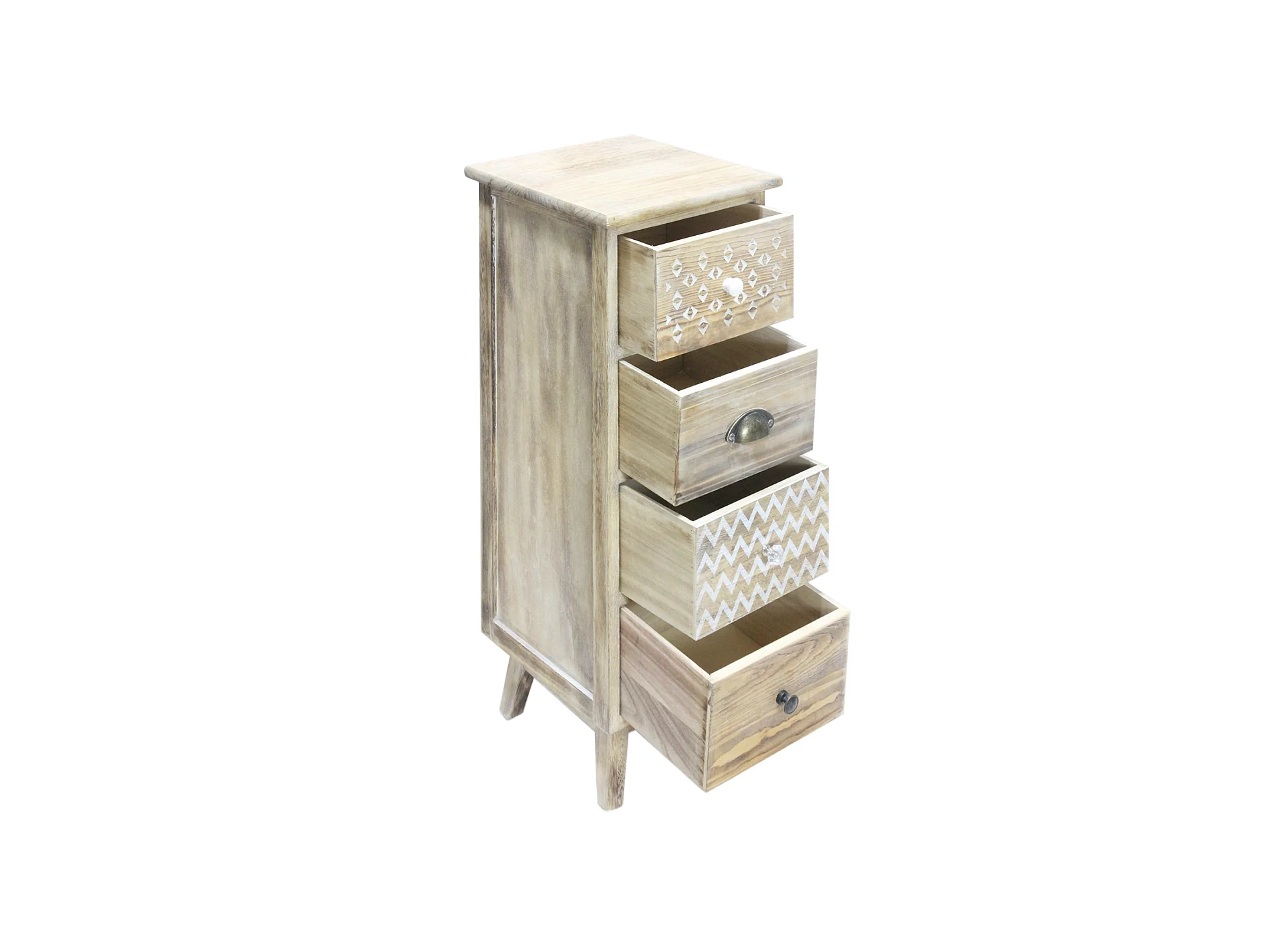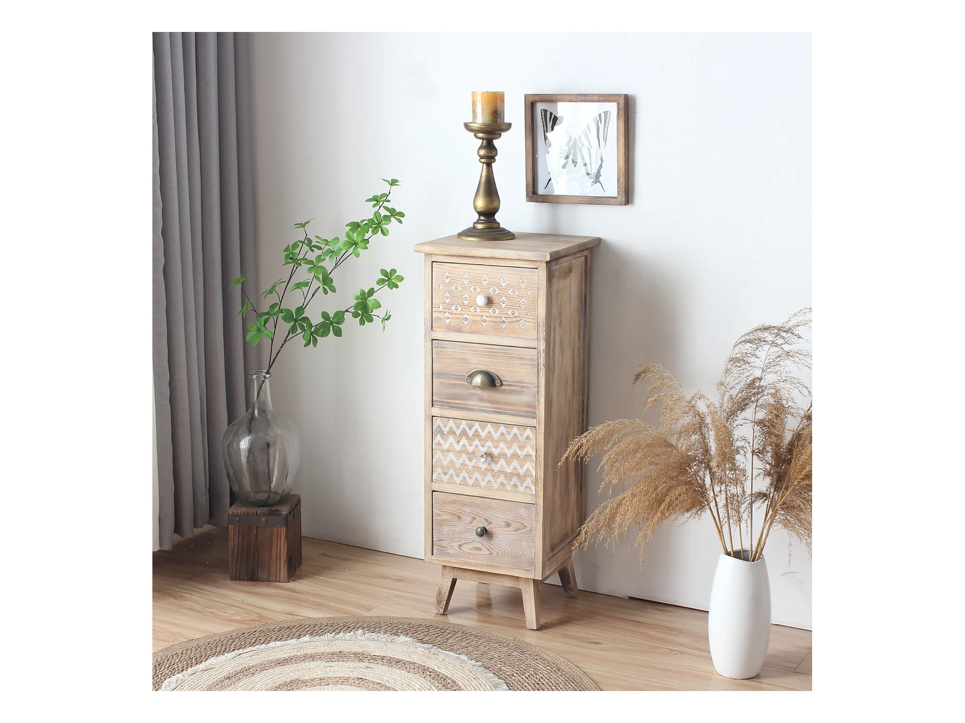 Table De Chevet Étroite 4 Tiroirs Boho Bois Pour Chambre À Coucher