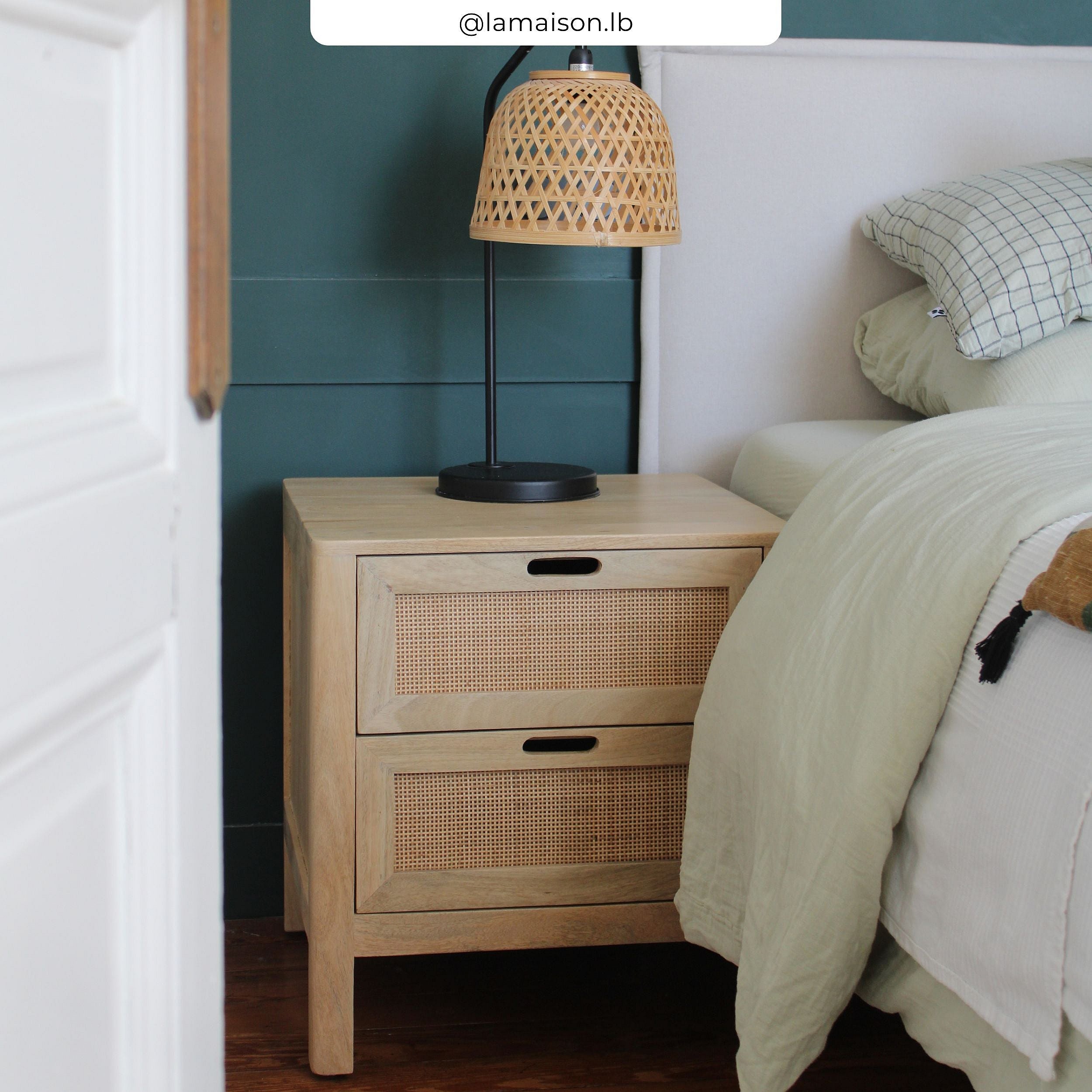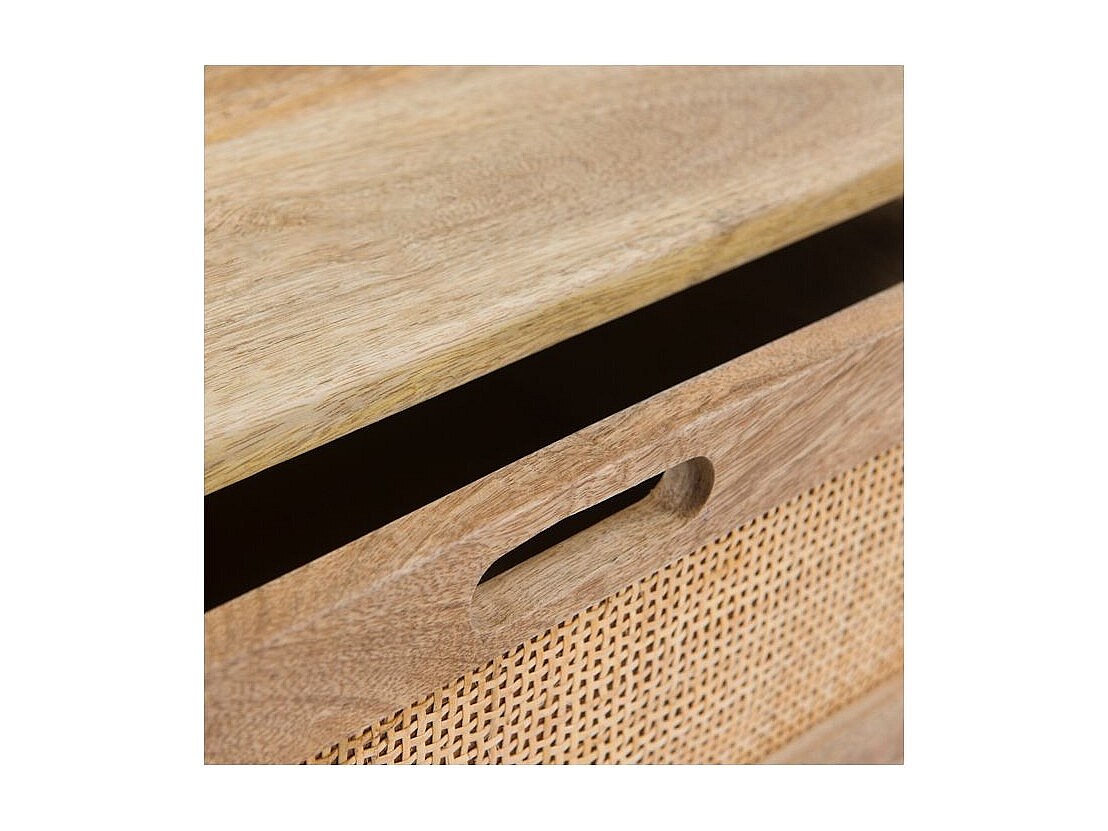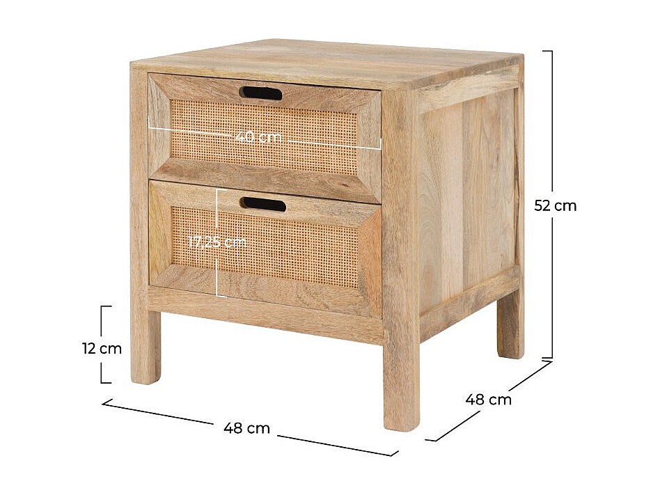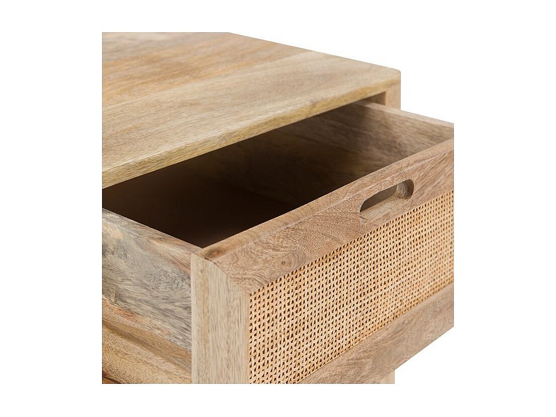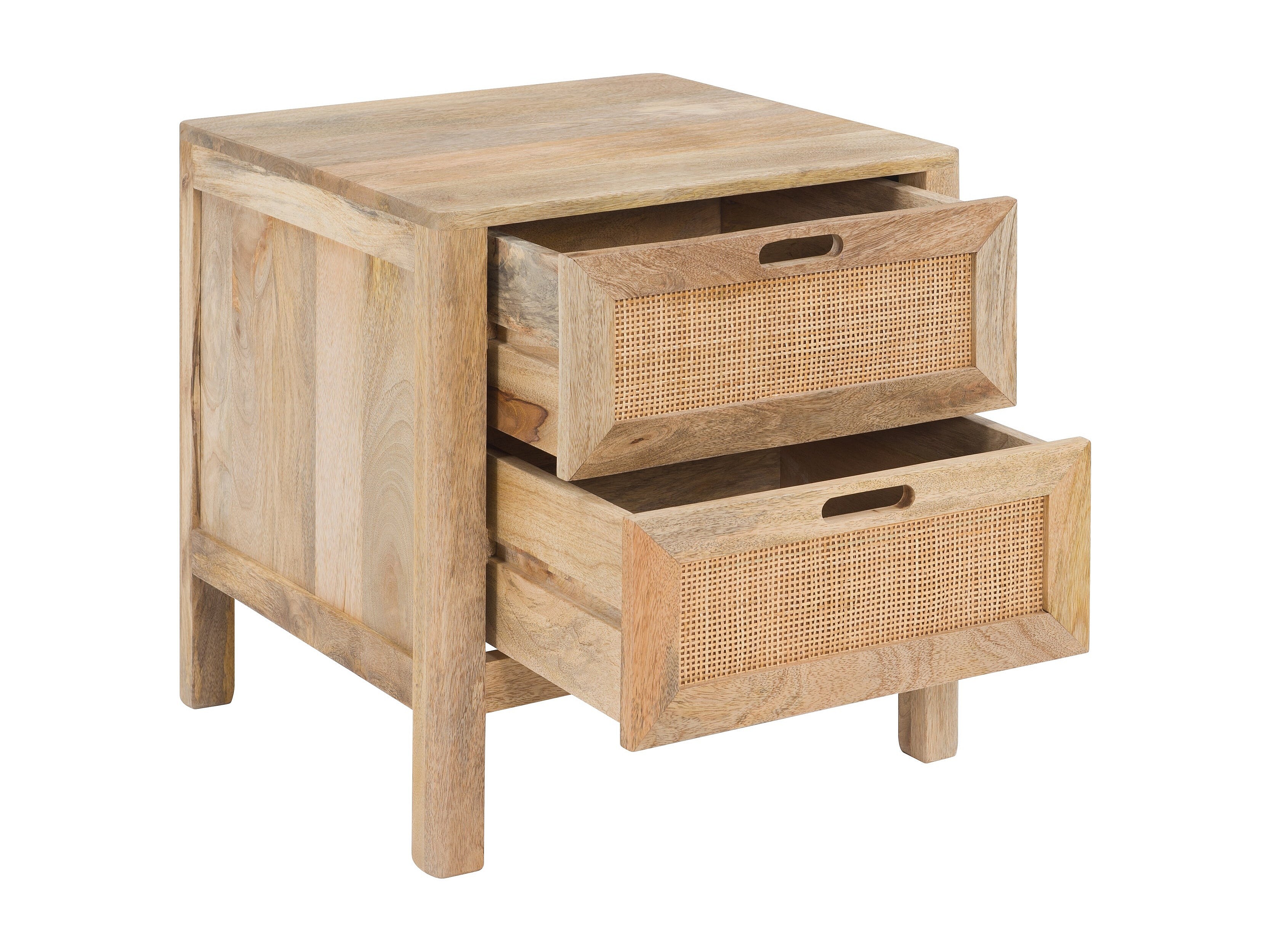 Table de chevet 2 tiroirs en bois de manguier et cannage - Félix