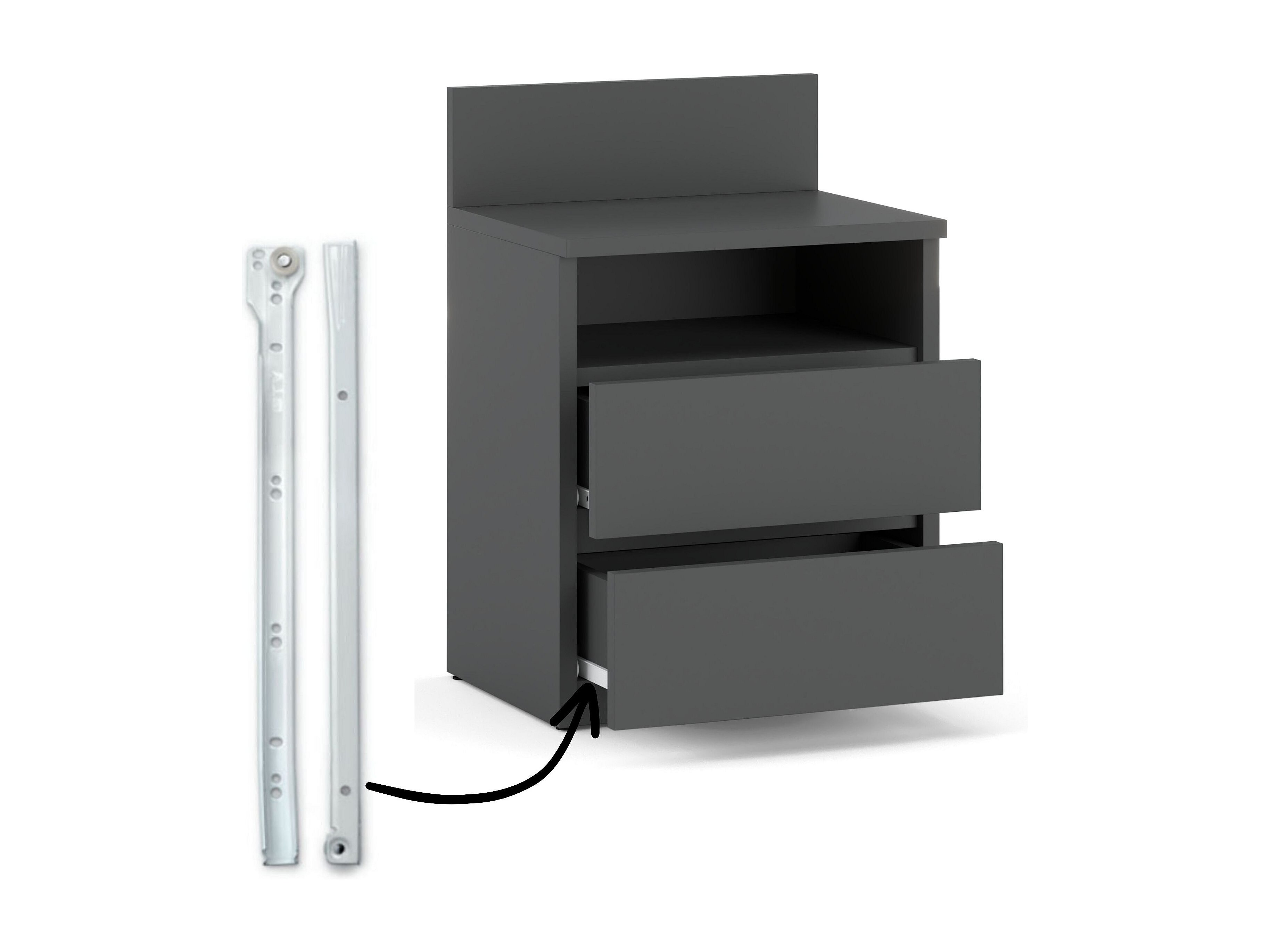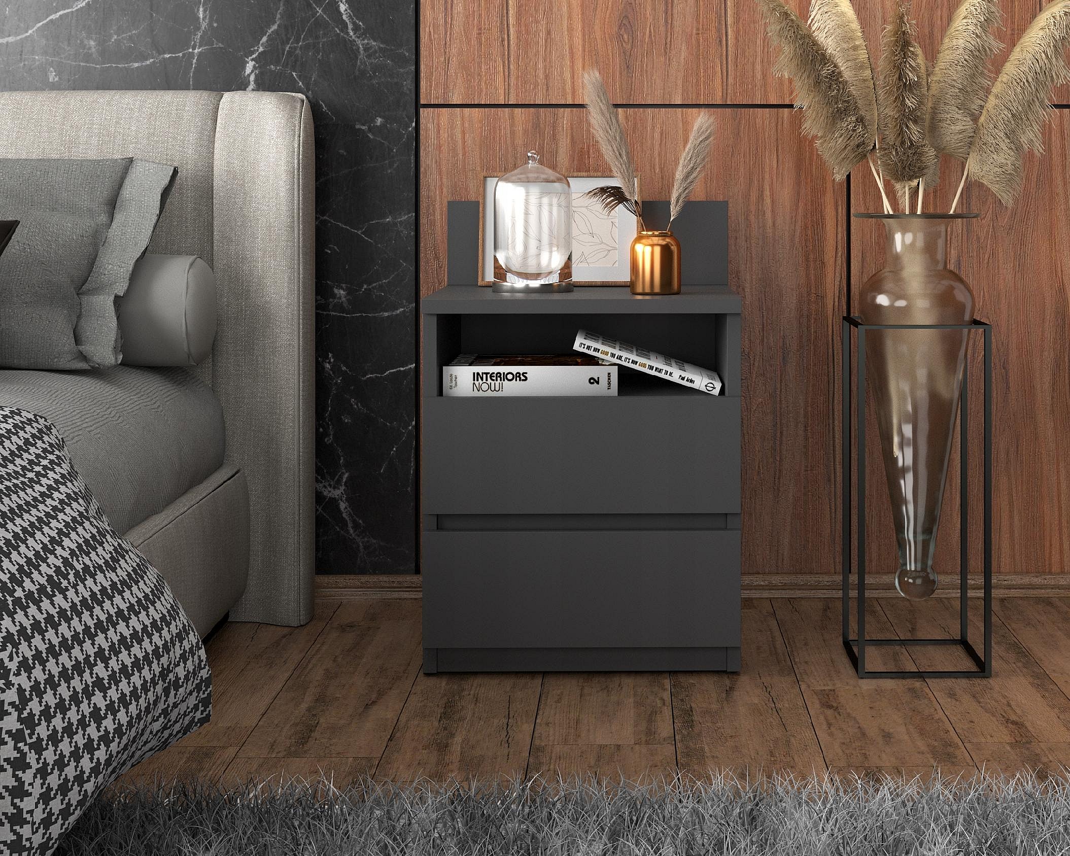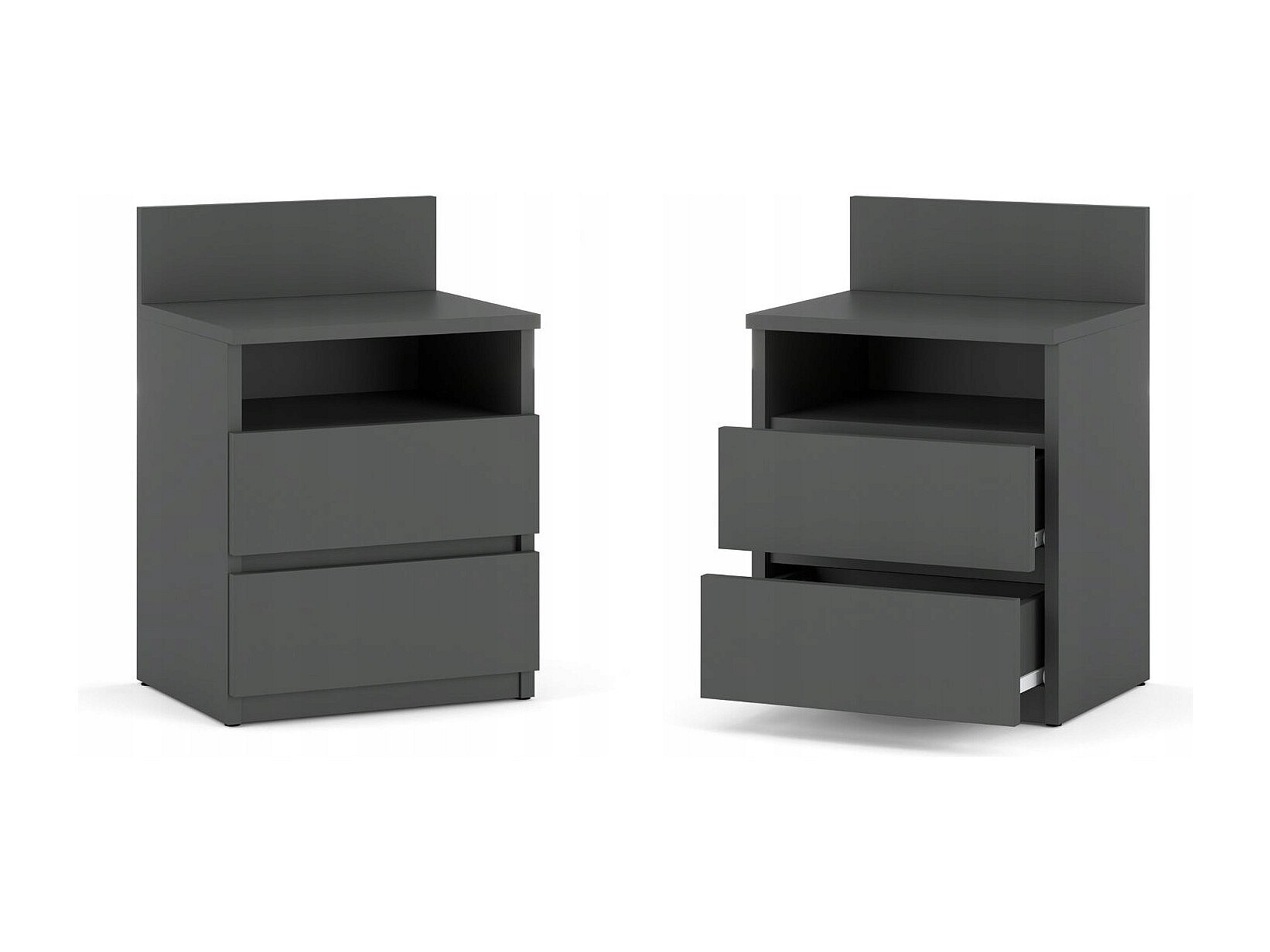 Table de chevet gris 40 cm, 2 tiroirs, meuble de nuit pour chambre à coucher