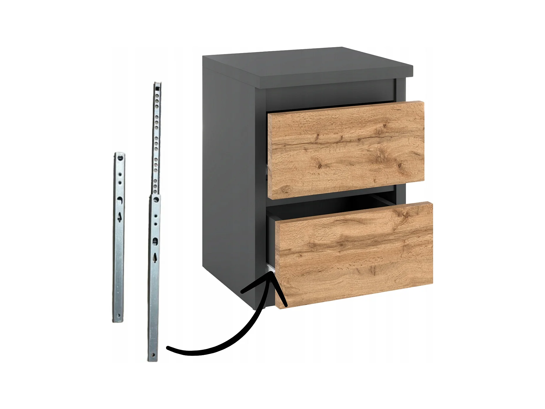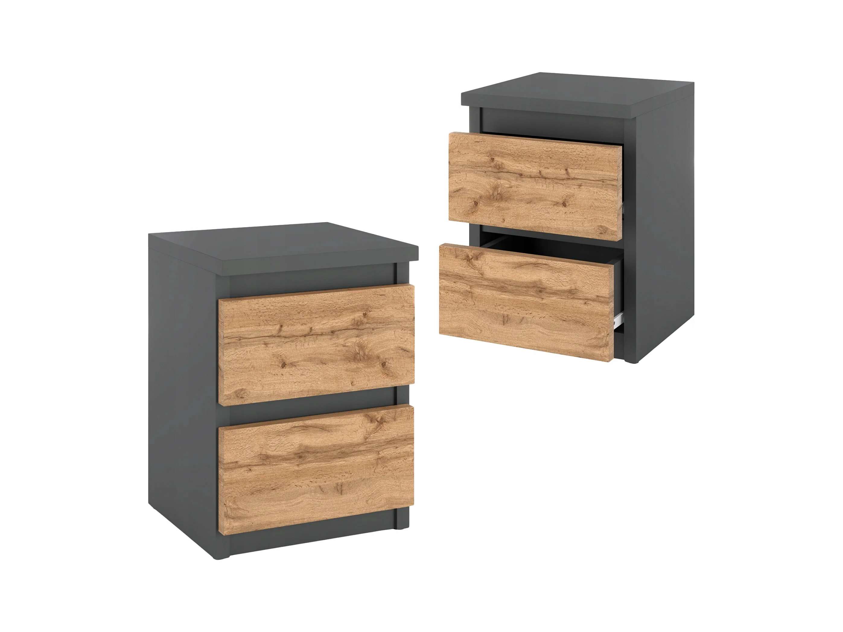 Table de chevet gris 40 cm, 2 tiroirs, meuble de nuit pour chambre à coucher