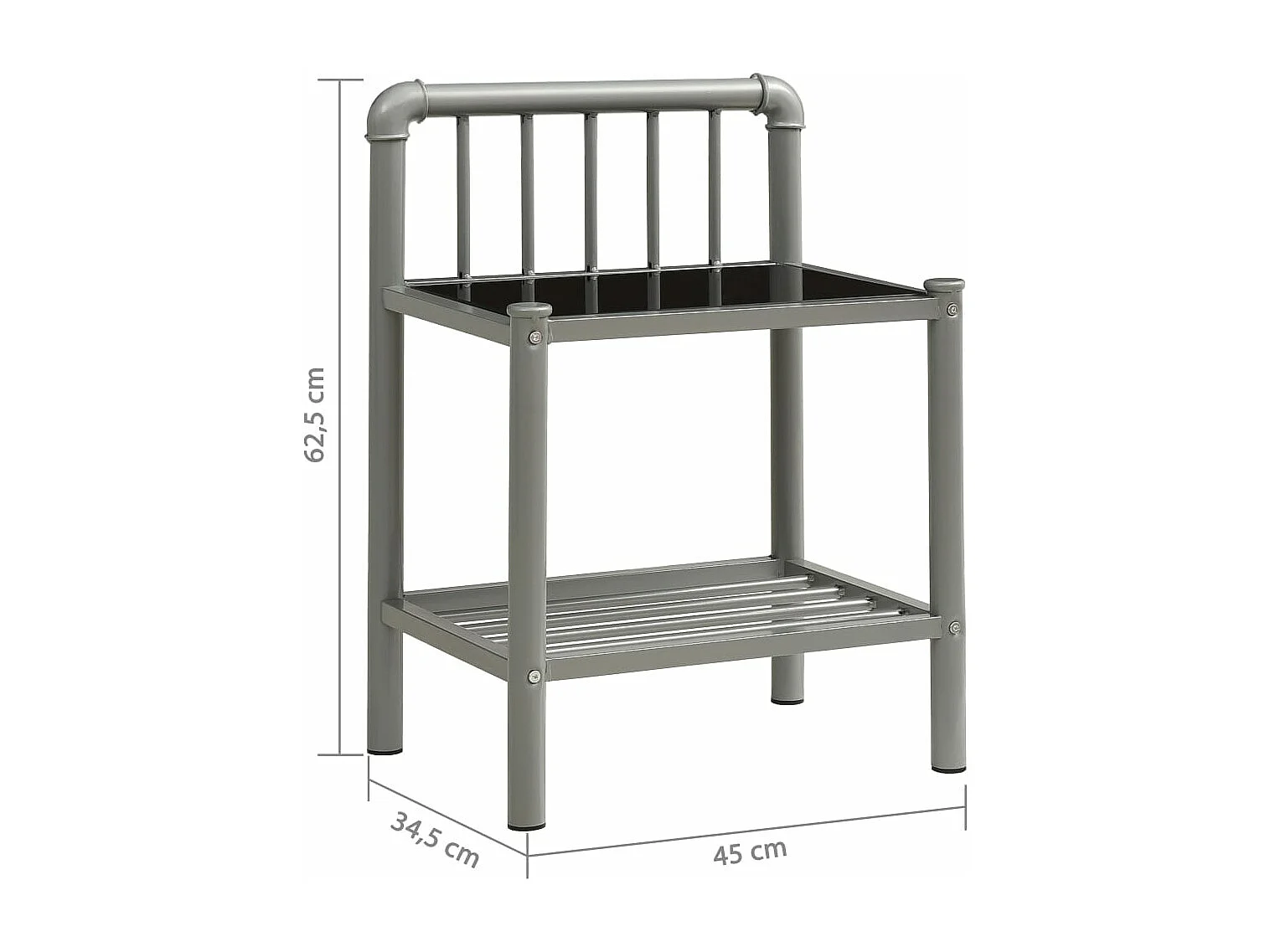 Table de chevet Gris et noir 45x34,5x62,5 cm Métal et verre