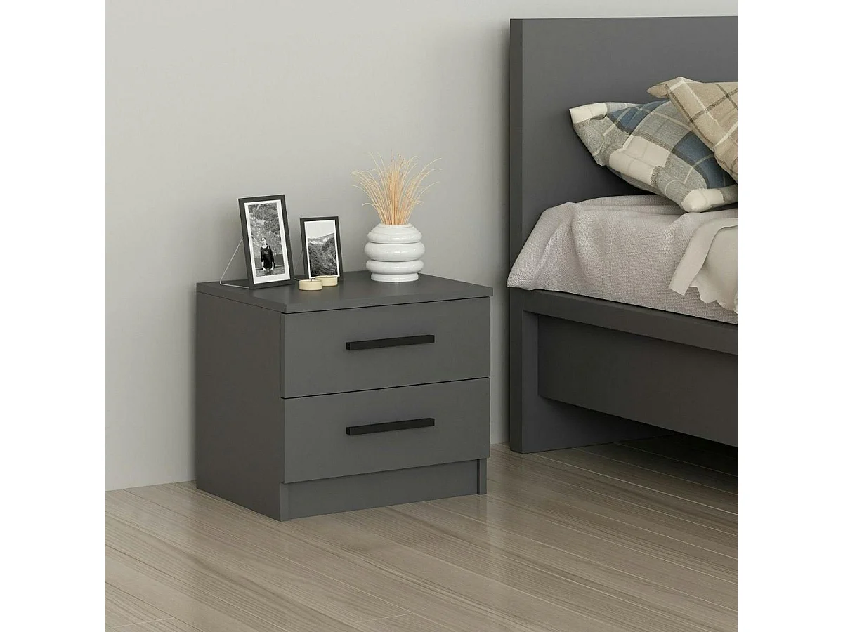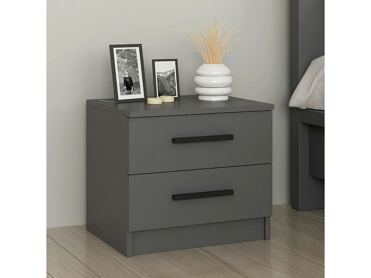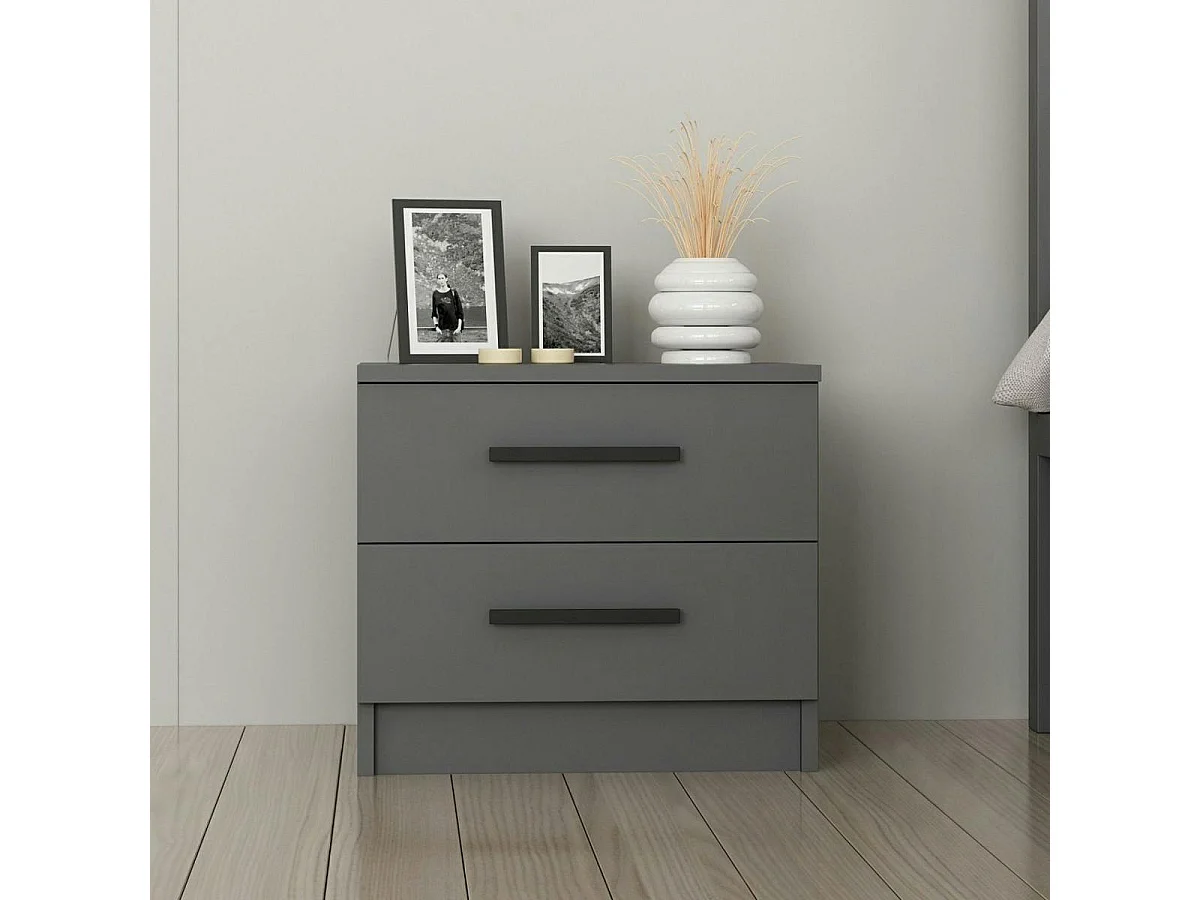 Table de chevet grise 2 tiroirs à poignée baguette MARFA