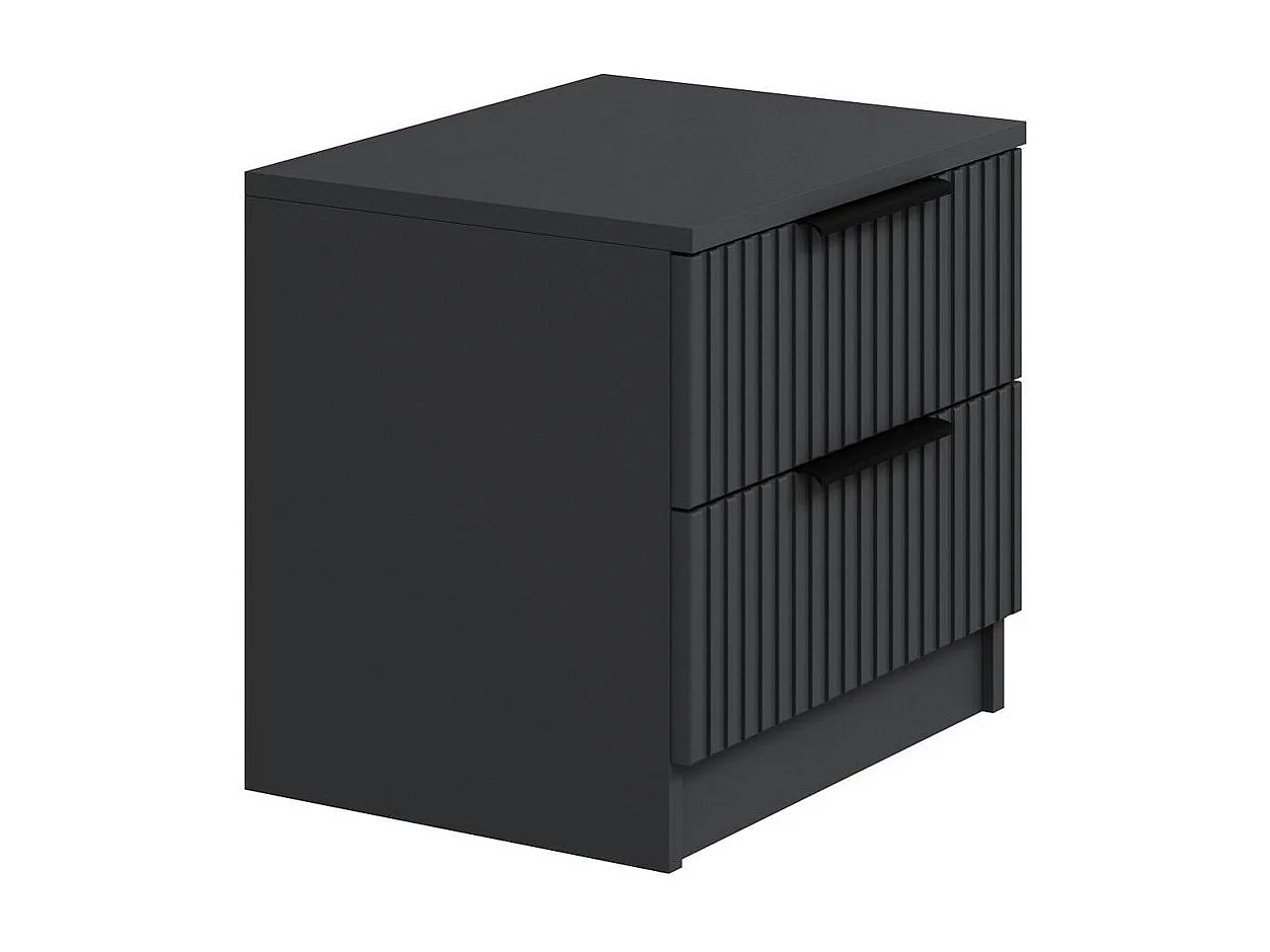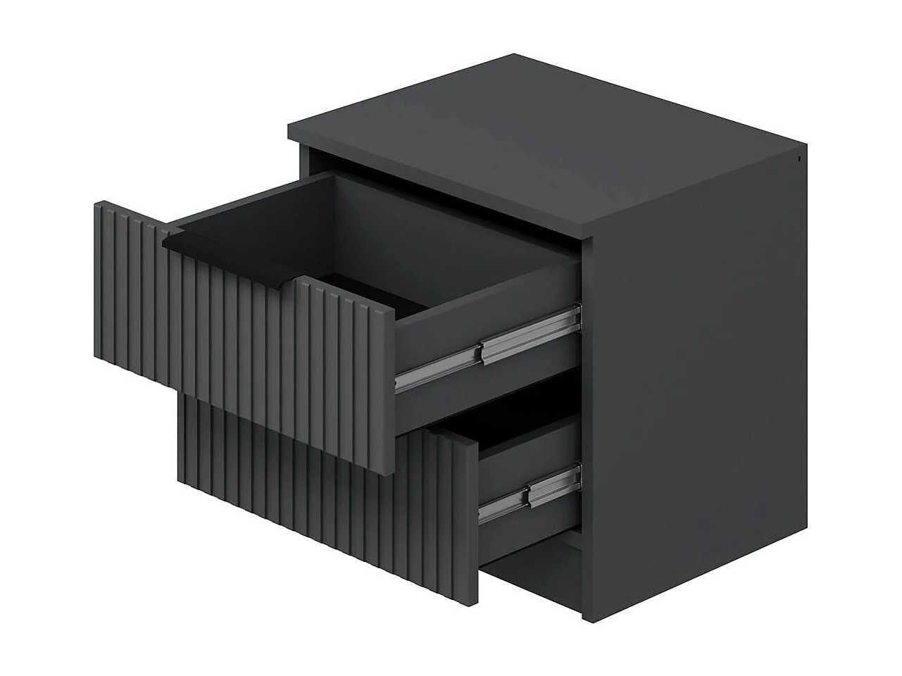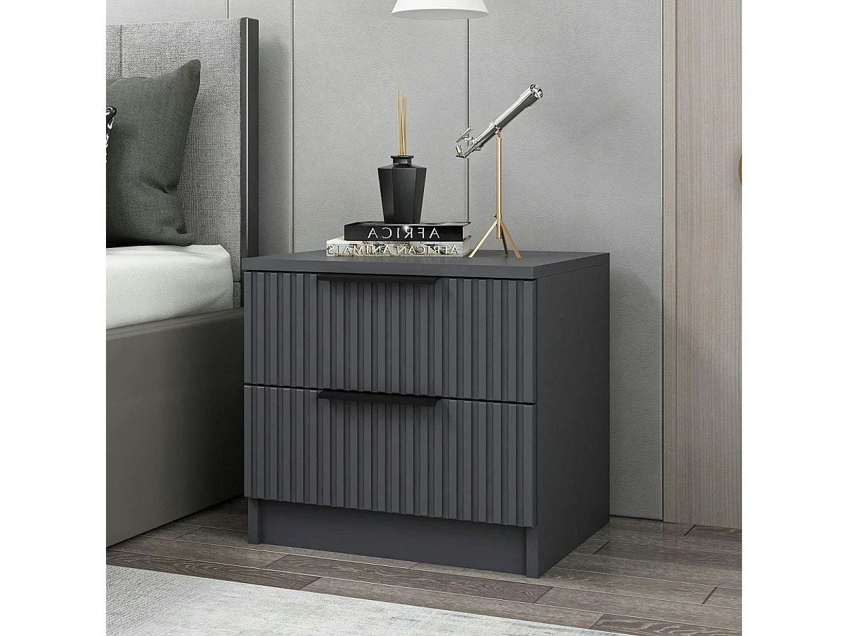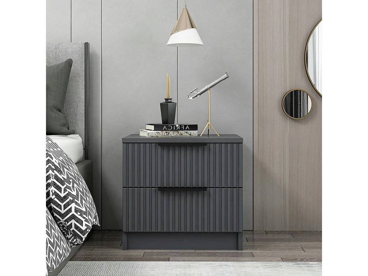 Table de chevet grise 2 tiroirs rainurés à poignées BYRON