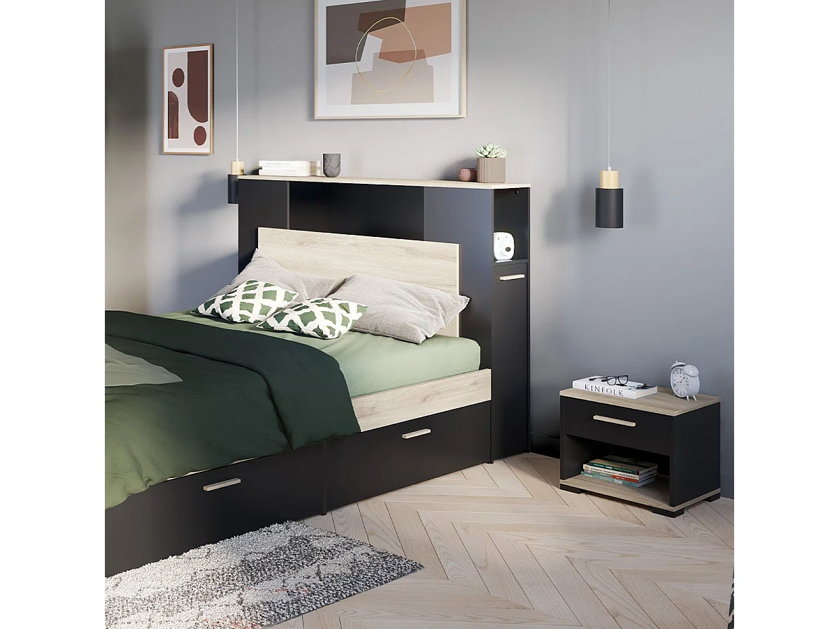 Chevet 1 Tiroir décor Chêne - Impression Rotin et Noir Mat L44,6 cm - Saïgon