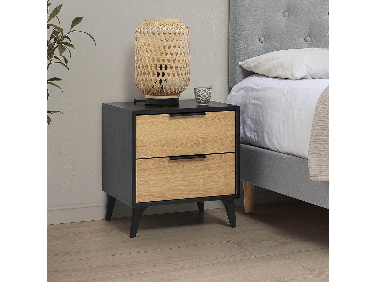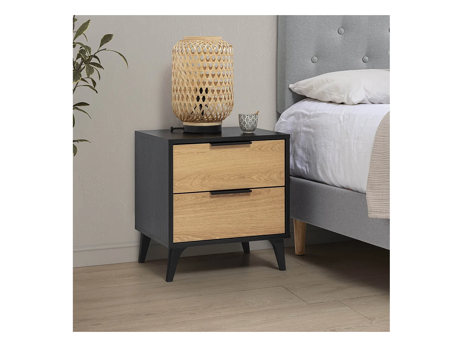 Table de chevet Kalma 2 tiroirs couleur noir/chêne
