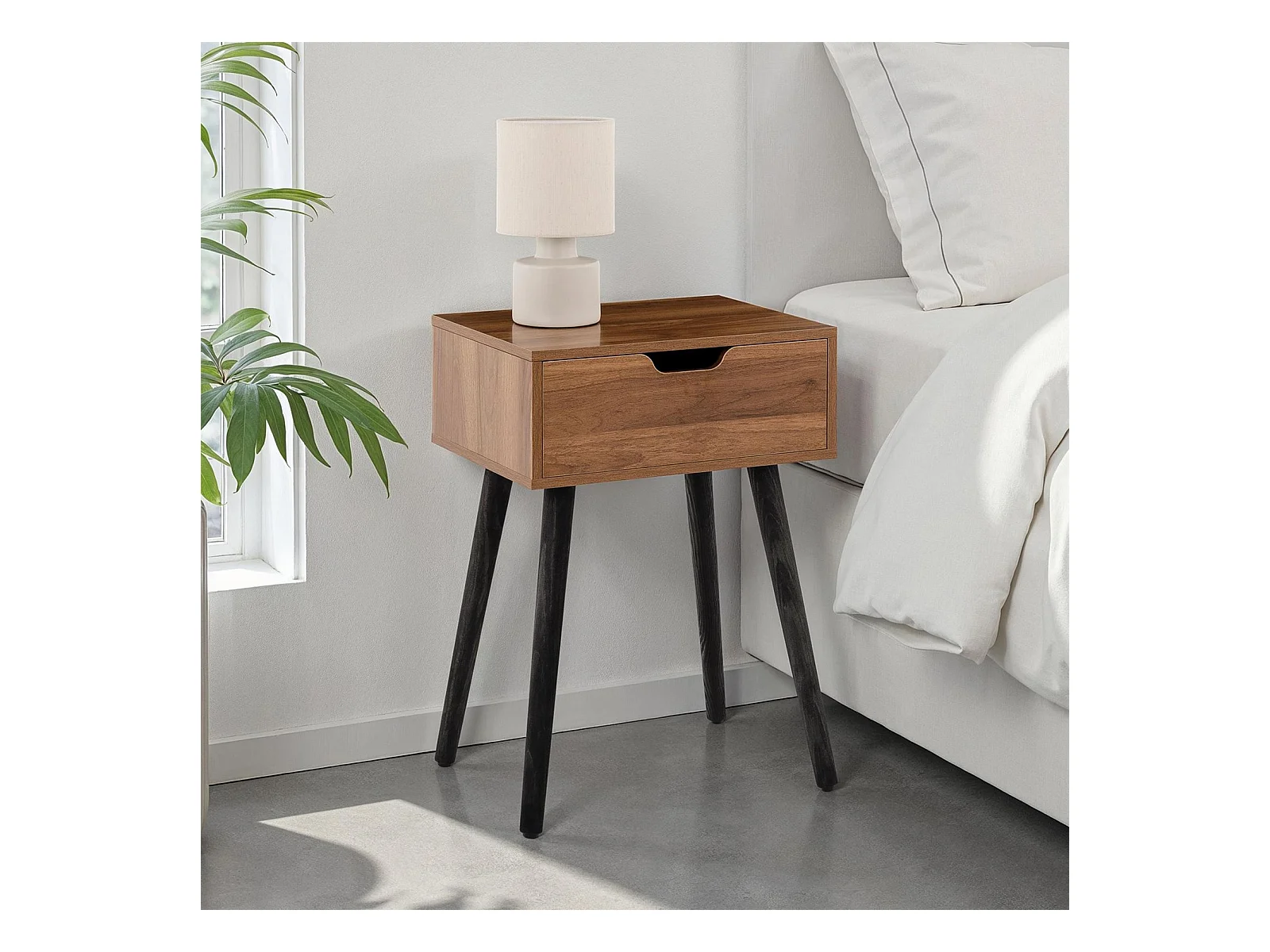 Table de chevet LAYLA H 57 cm avec 1 Tiroir Coloris Noyer Design Moderne, Table de Nuit sur Pieds en Bois