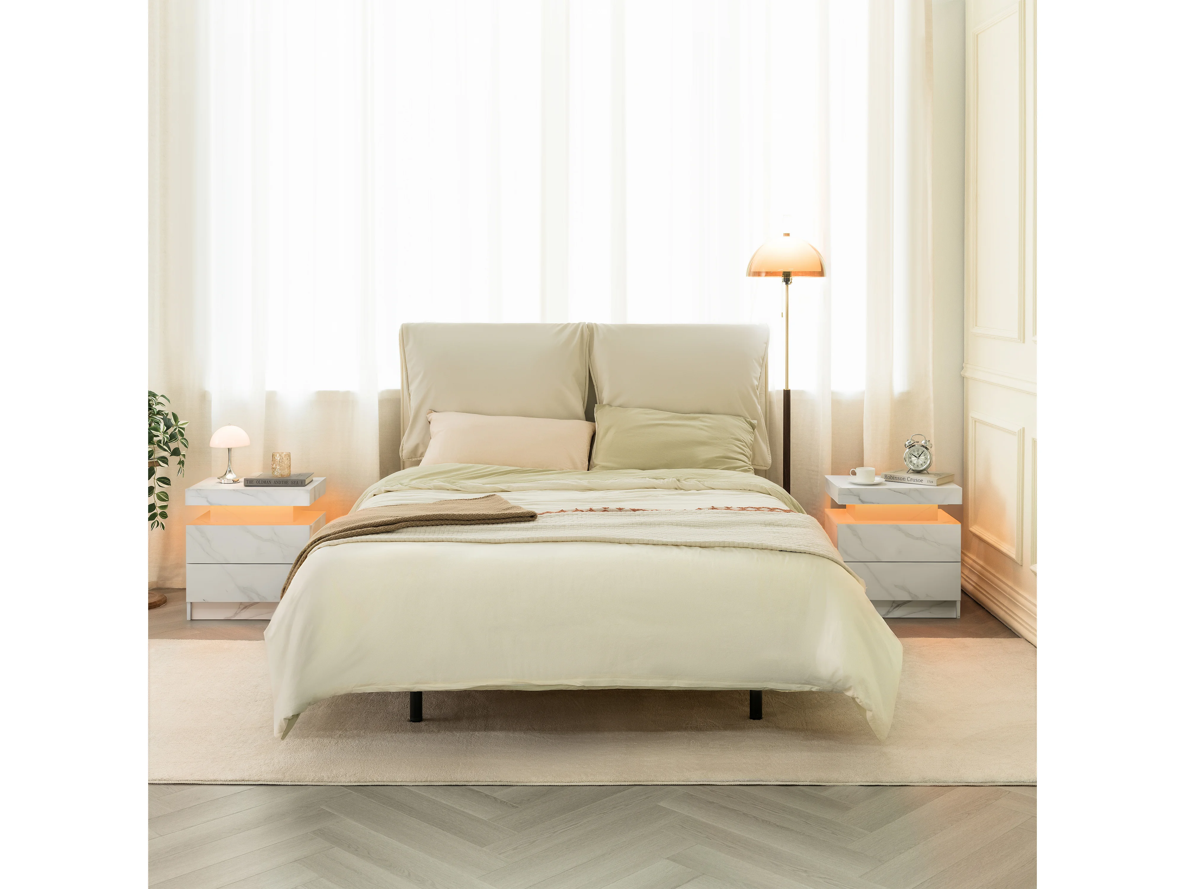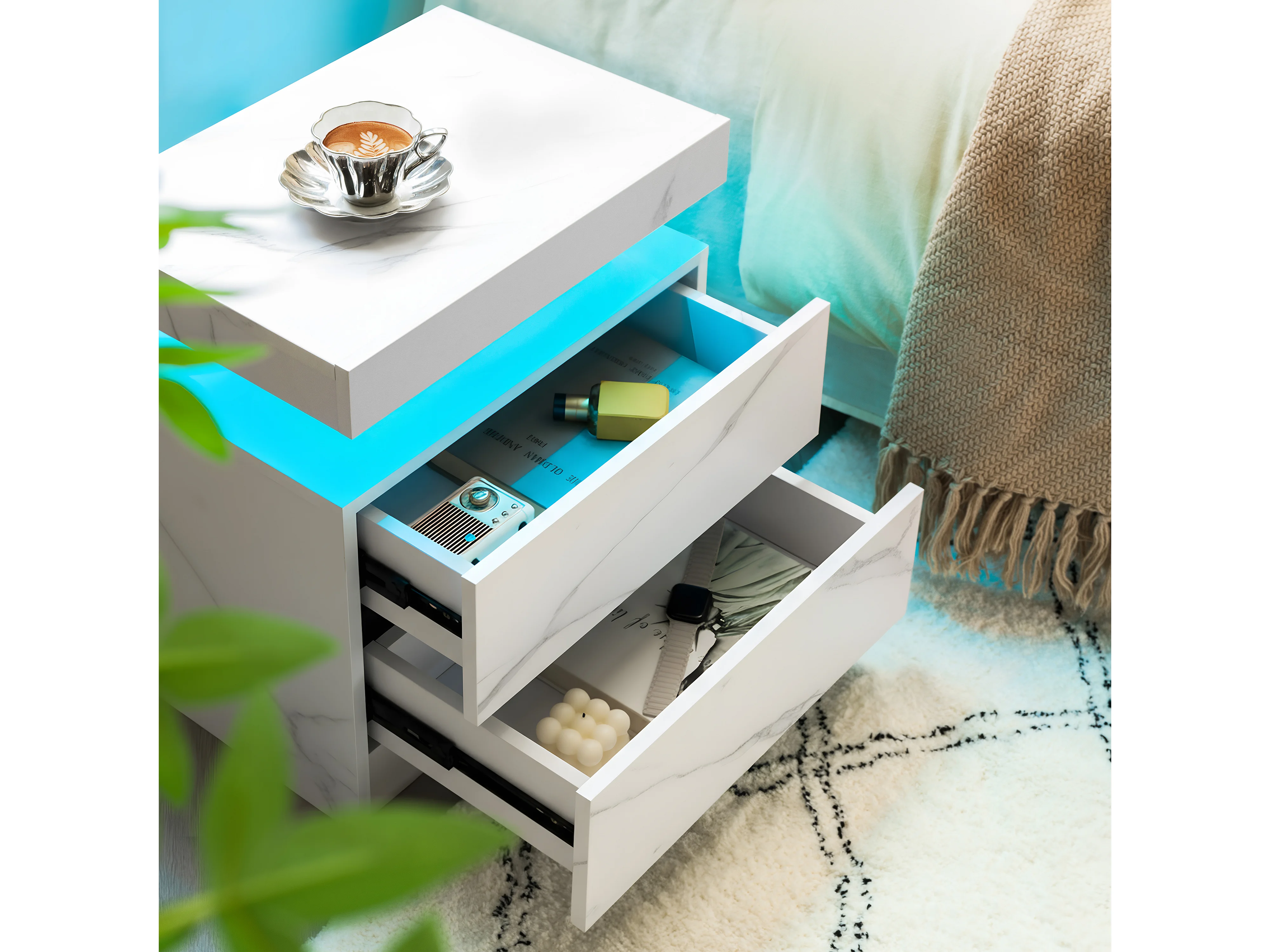 Table de chevet LED avec 2 tiroirs - Blanc en texture